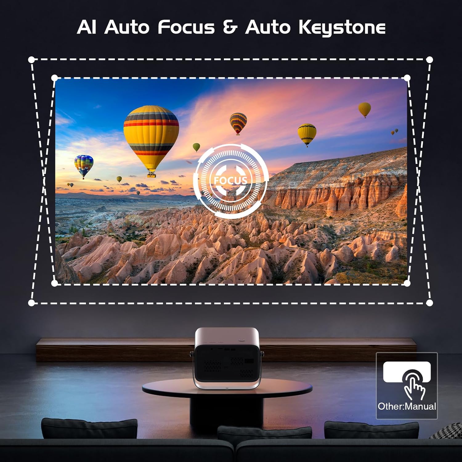 【Auto Focus/Keystone】4K Projector with WiFi and Bluetooth, 360° Rotating Movie Projector, Portable Projector with 200 ANSI, Outdoor Projector for Phone/PC/TV Stick/DVD/USB/HDMI