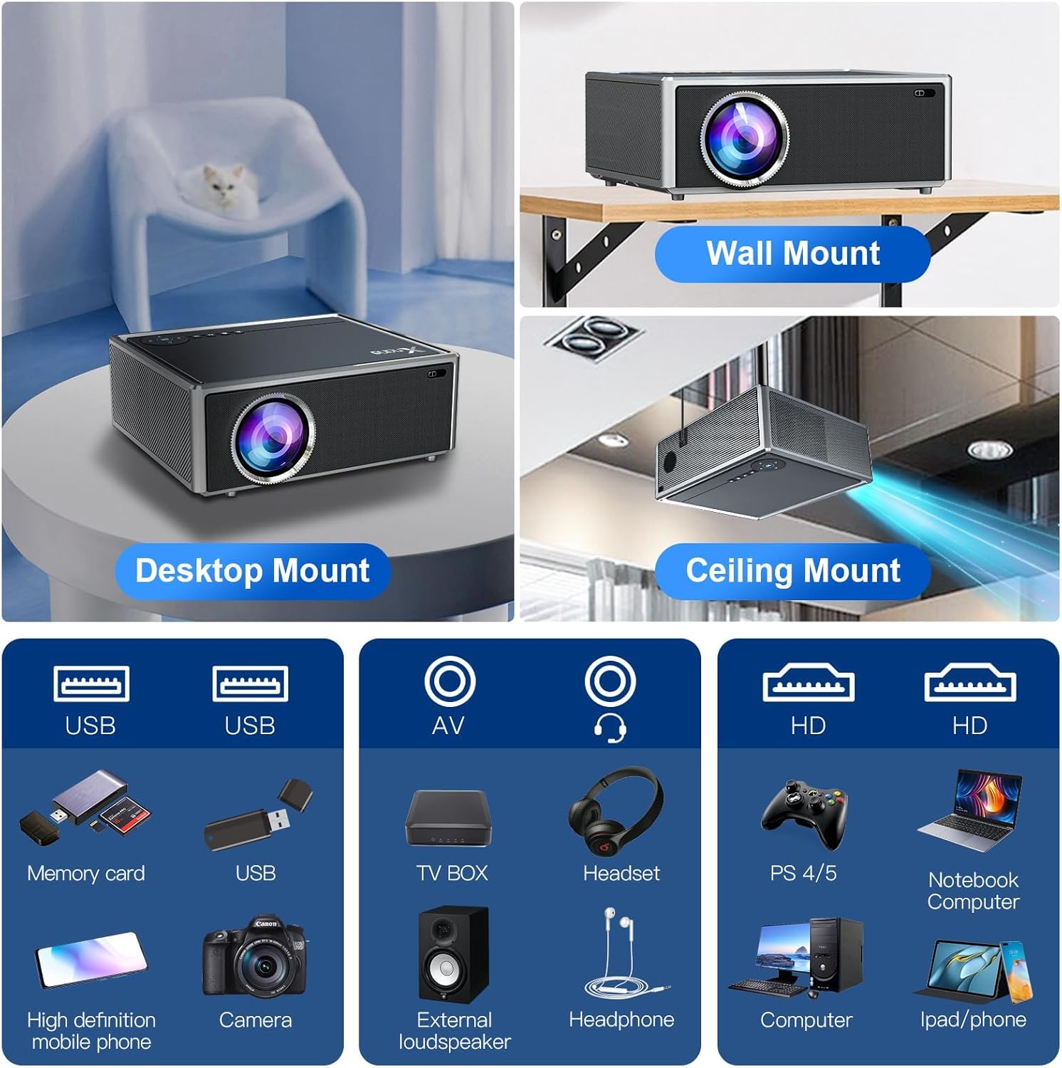 【Video Smart Projector with Android OS GTV】: Integrated smart GTV system so you can access online streaming services and run app perfectly for endless fun with services, such as Netflix, YouTube, Prime Video, Disney+, and more apps. You can see 700,000+ movies and tv episodes, all in one place, No need to buy TV sticks. NOTE: bluetooth and wifi functions are only supported in the GTV system; Therefore, such as external chromecast function etc. are required in the GTV UI to be able to use them.
