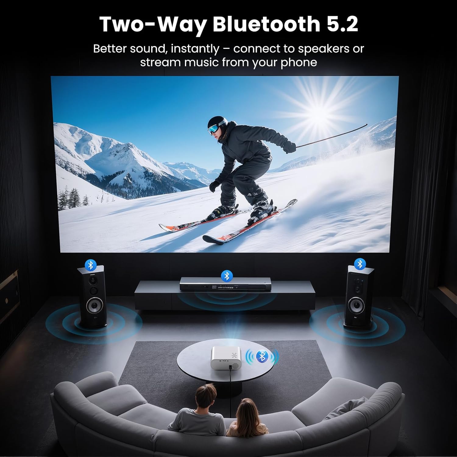 Lightning-Fast WiFi 6 & 5.2 Bluetooth Technology: Enjoy seamless streaming with our upgraded WiFi 6 technology, which eliminates buffering for smooth, uninterrupted viewing ensuring an exceptional entertainment experience without delays. The Bluetooth projector with two-way Bluetooth 5.2 for wireless connections to speakers and headphones, enhancing audio quality for a better viewing experience.