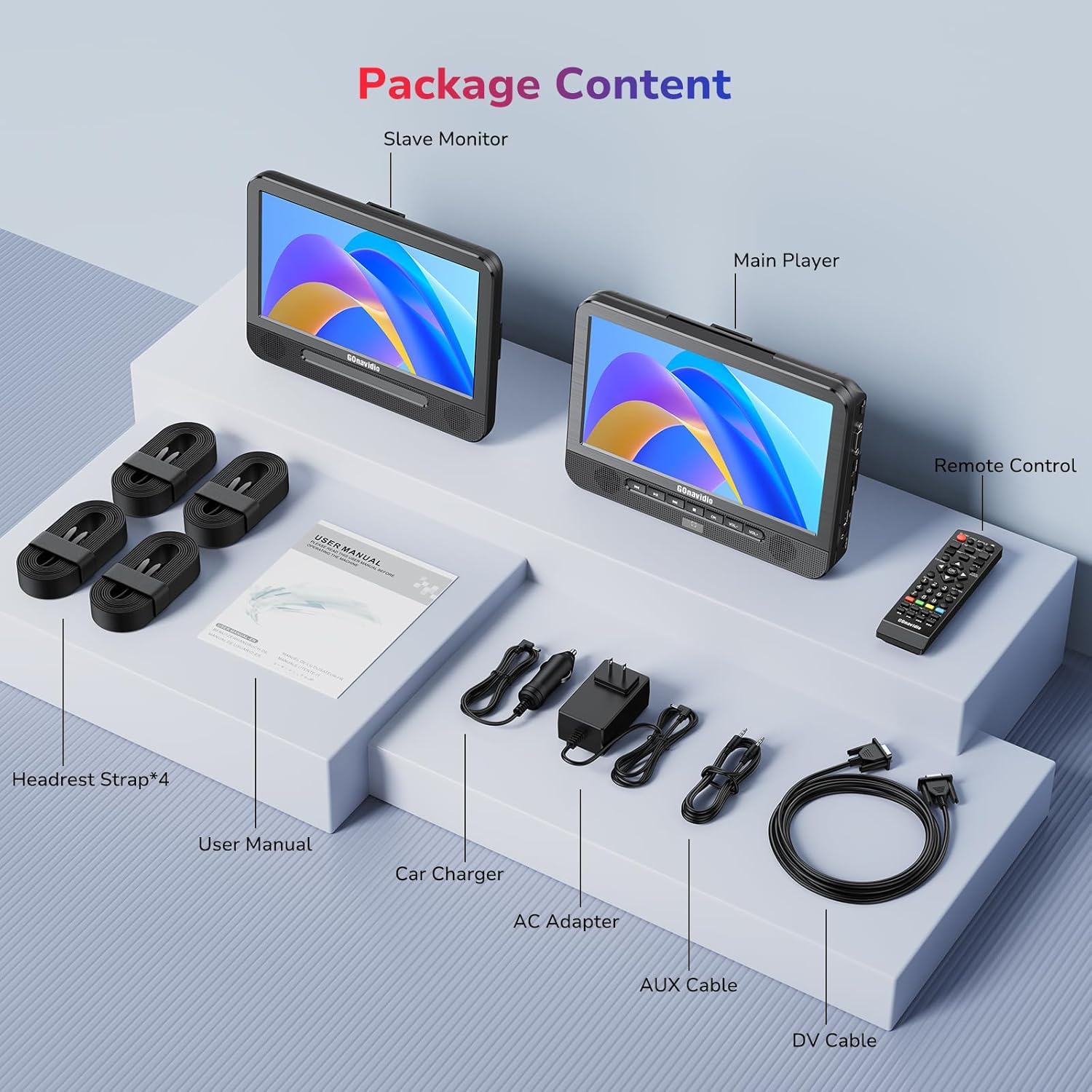 10.1” Portable Blu Ray Players for Car with Rechargeable Battery, Dual Screen Blu Ray DVD Players Support 1080P Video, Dolby Audio, HDMI Out, Sync Screen, Last Memory, USB/SD, Play A Same Movie