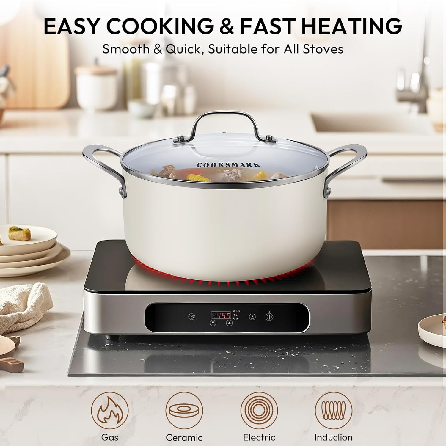 👍【Works on ALL Stovetops】 ✔ Induction-ready (magnetic stainless steel base) ✔ Compatible with gas/electric/glass-top ✔ Even heat distribution for perfect results ✔ Oven-safe up to 500°F for versatile cooking