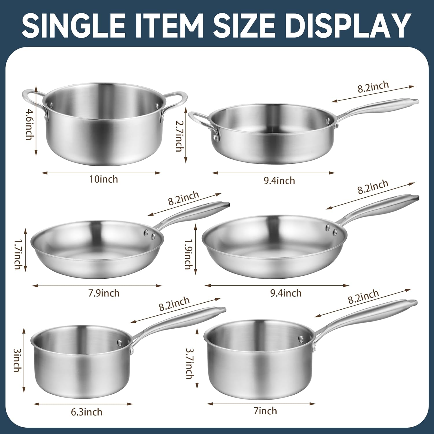 10-Piece Tri-Ply Stainless Steel Cookware Set – Induction-Ready, Glass Lids,Pots and Pans Kitchen Set, Riveted Handles, Dishwasher Safe, Compatible with All Cooktops