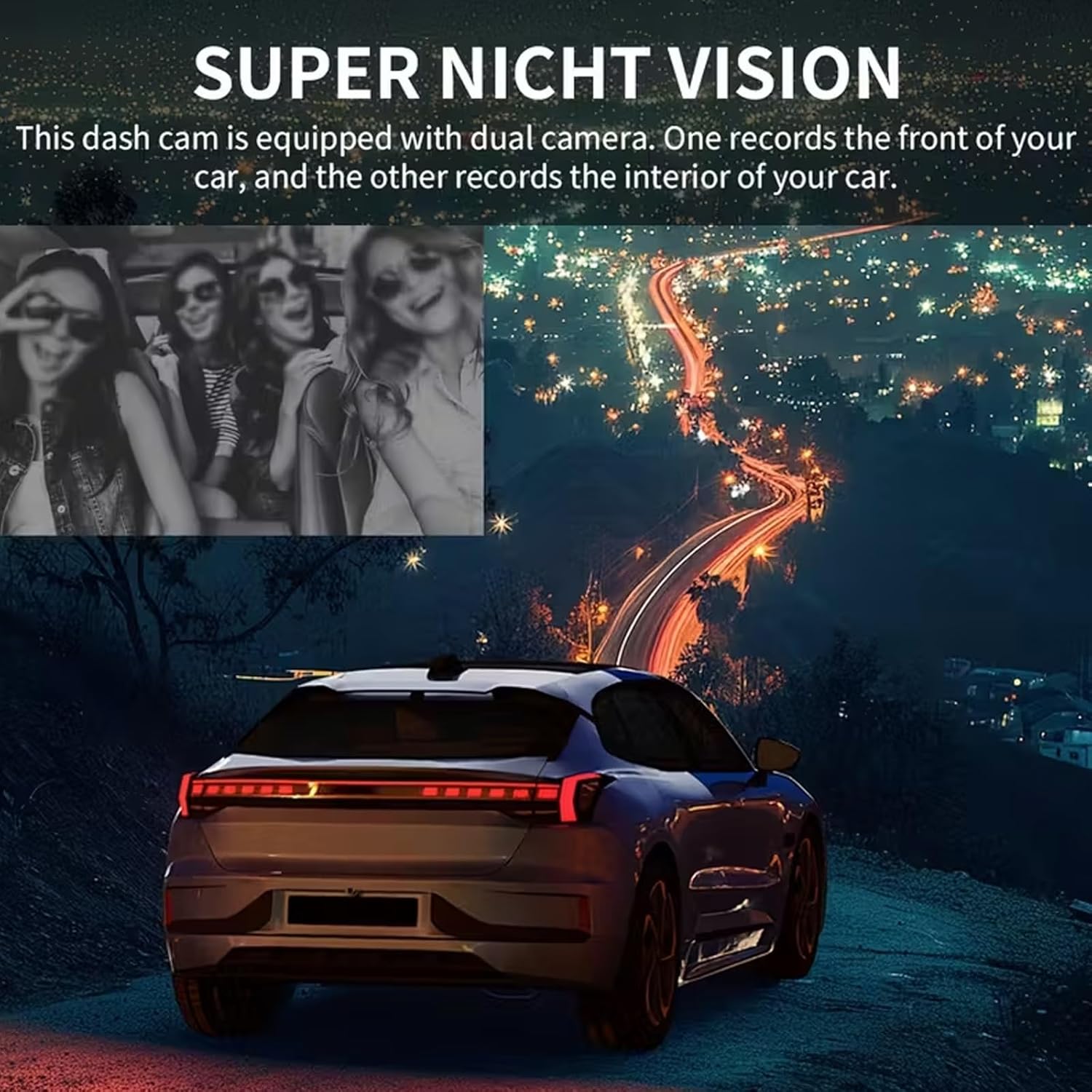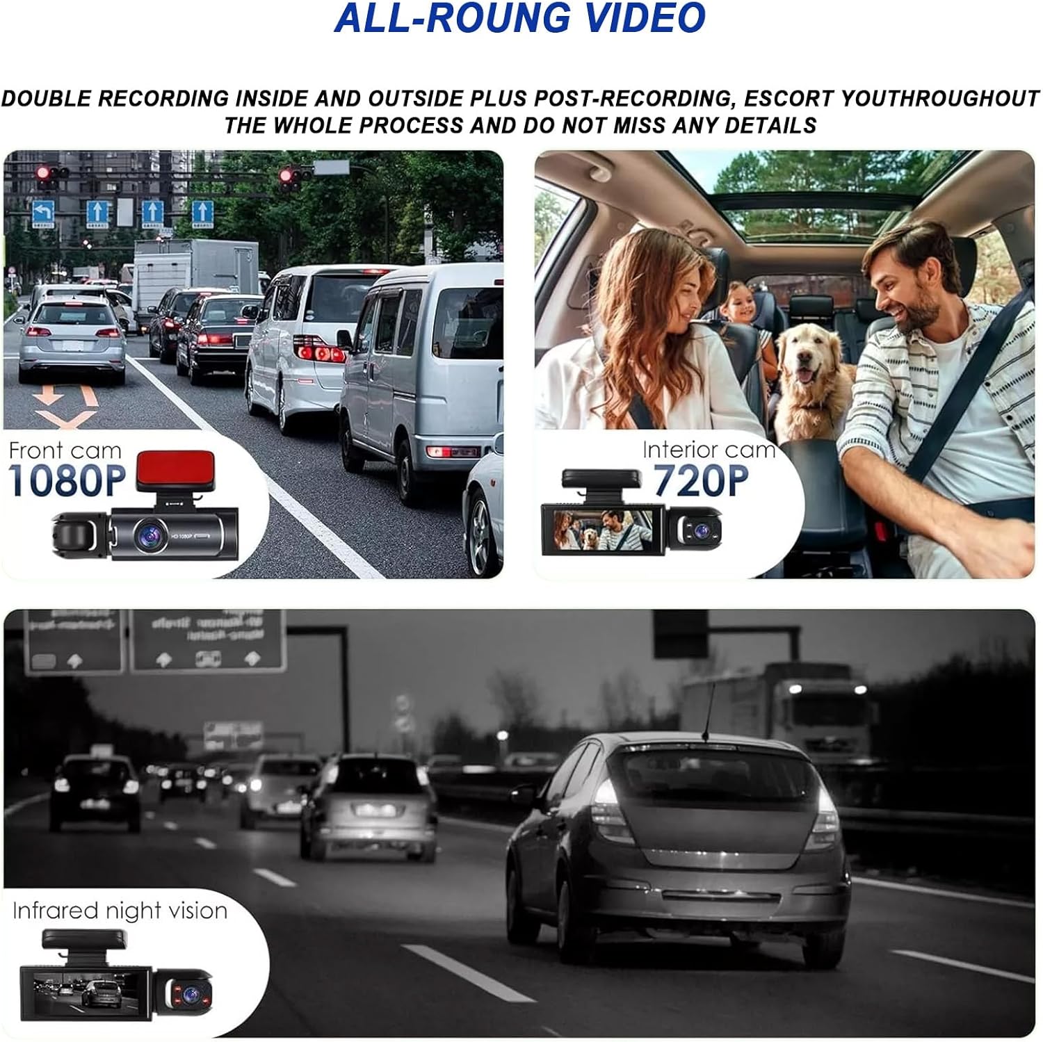 【 Night Vision Function】New Night Market Camera, the dashboard front camera features infrared night vision for optimal performance in low-light conditions, ensuring full HD capture in both day and night. The interior-facing camera utilizes 3 unique infrared LED fill lights to accurately capture the driver and passengers even in complete darkness.