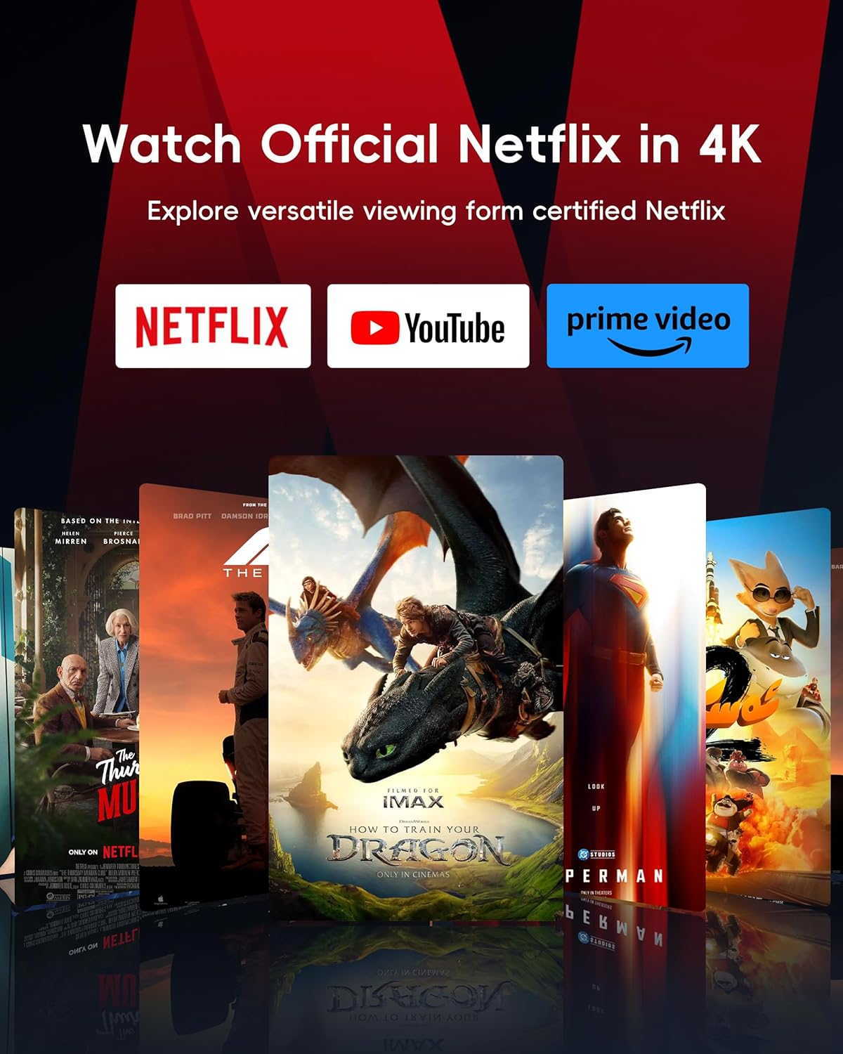 [Officially Licensed Netflix,Yiutube & Prime Video] Enjoy entertainment straight out of the box.Polocsh smart projector is officially authorised, featuring built-in popular apps like Netflix to ensure secure, stable, high-definition streaming without additional devices