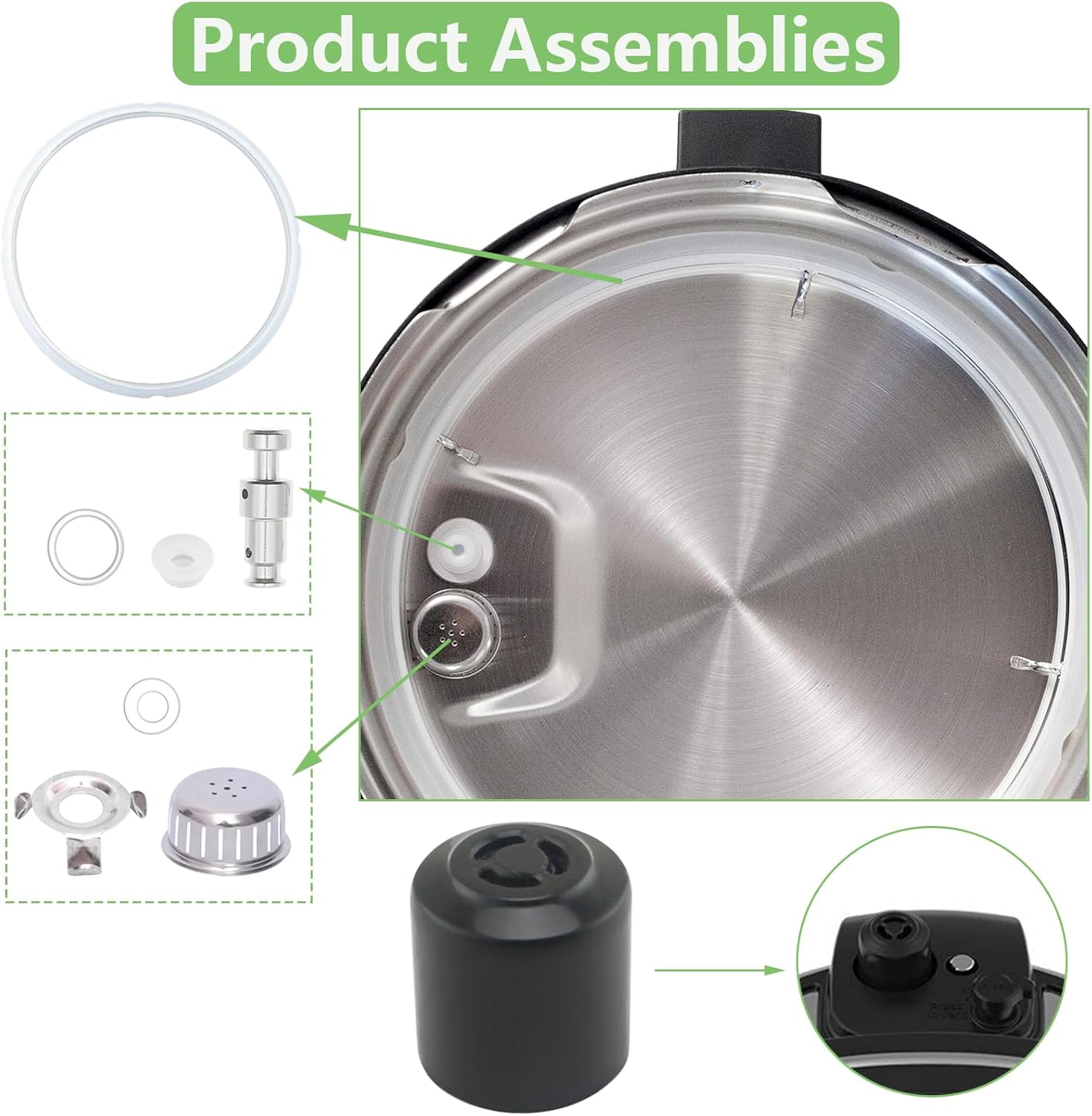 Instant pot replacement parts: 2 × instant pot sealing ring, 1 × instant pot steam release valve, 1 × float valve, 3 × float valve gasket, 1 × anti-block shield, 1 x anti-blocking shroud bracket, 2 x valve sealing ring.