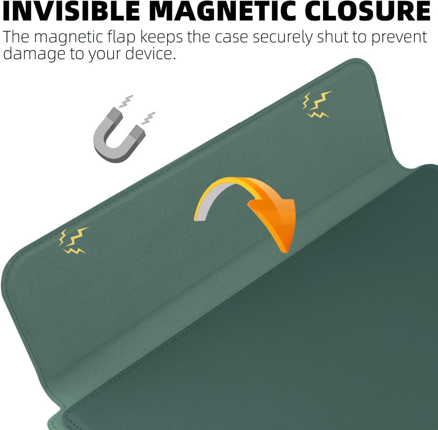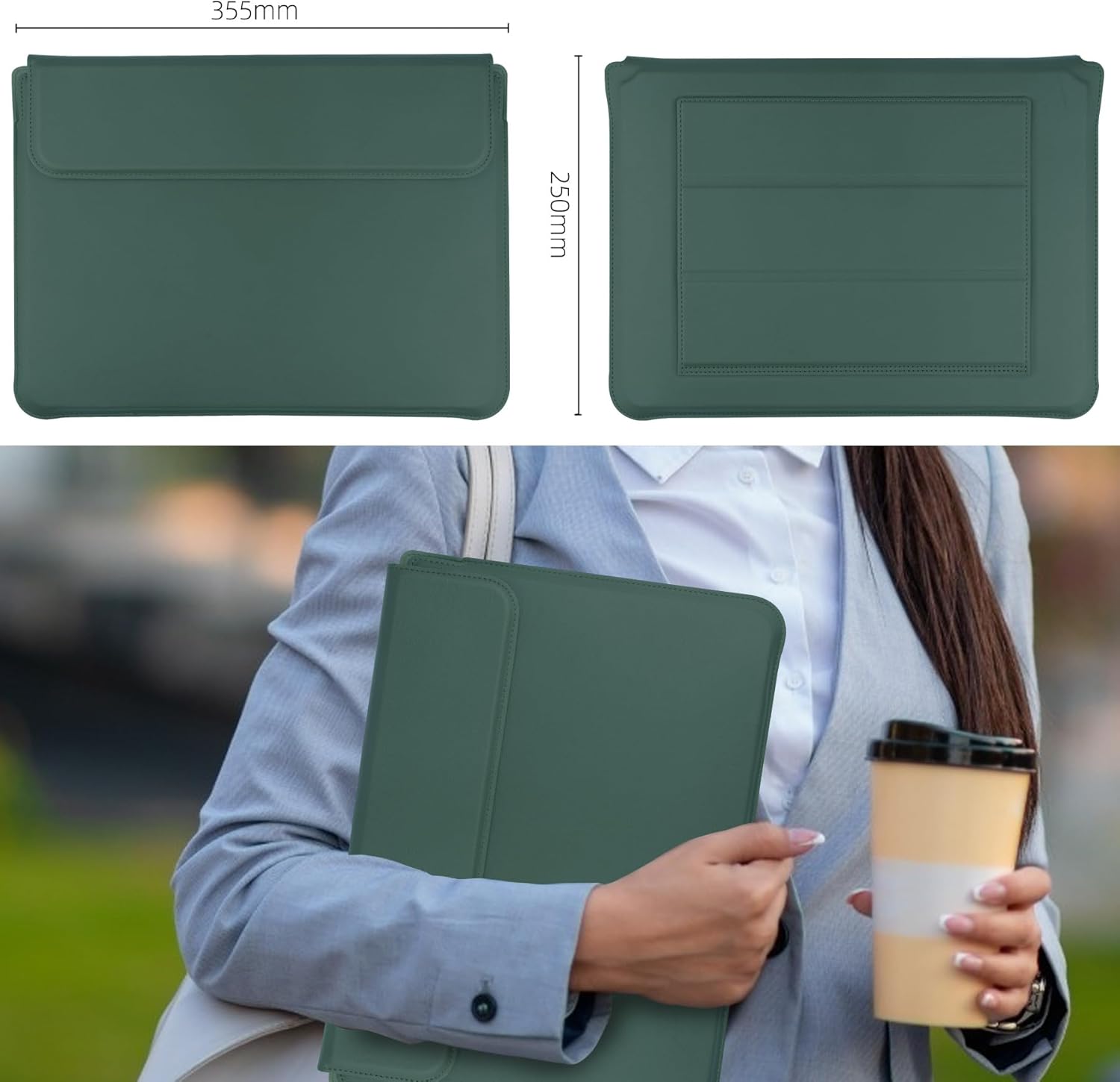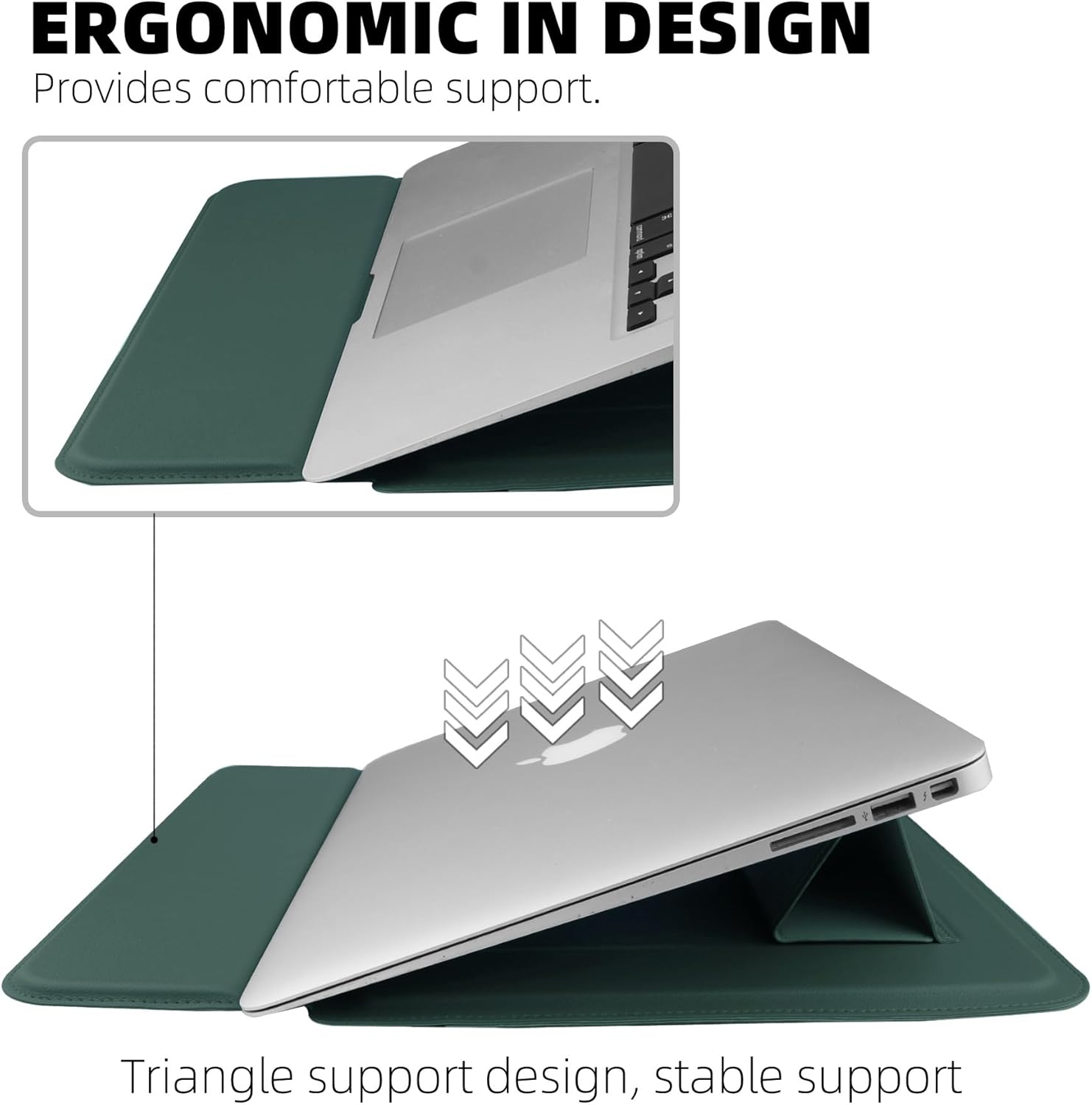 13.3 Inch Laptop Sleeve Case PU Leather Case Compatible with MacBook Air M1 M2 2022-2018 / MacBook Pro 13 M2 2022-2016, Surface Pro 8 2021 / Surface Go 3 2021, Sleeve Pouch with Stand Green