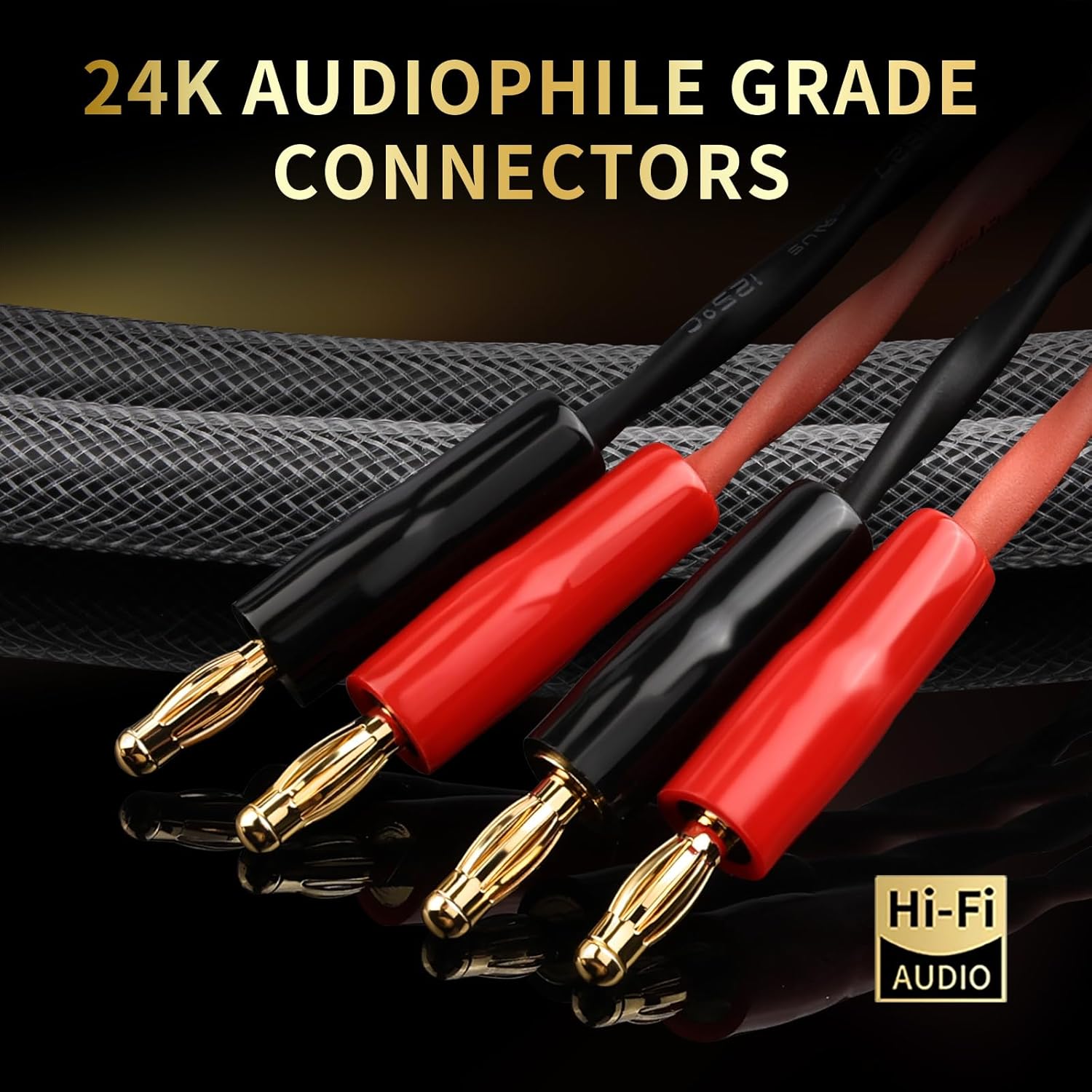 24K Gold-Plated Pure Copper Connectors: 5-micron thick plating (thicker than standard 2-3 microns) ensures longer-lasting corrosion resistance. The pure copper core guarantees smooth plugging/unplugging, making it a reliable Banana Plug Speaker Cable. Enjoy crisp, stable performance—no glitches, even after 1,000+ insertions, perfect for Passive Speaker Cable applications.