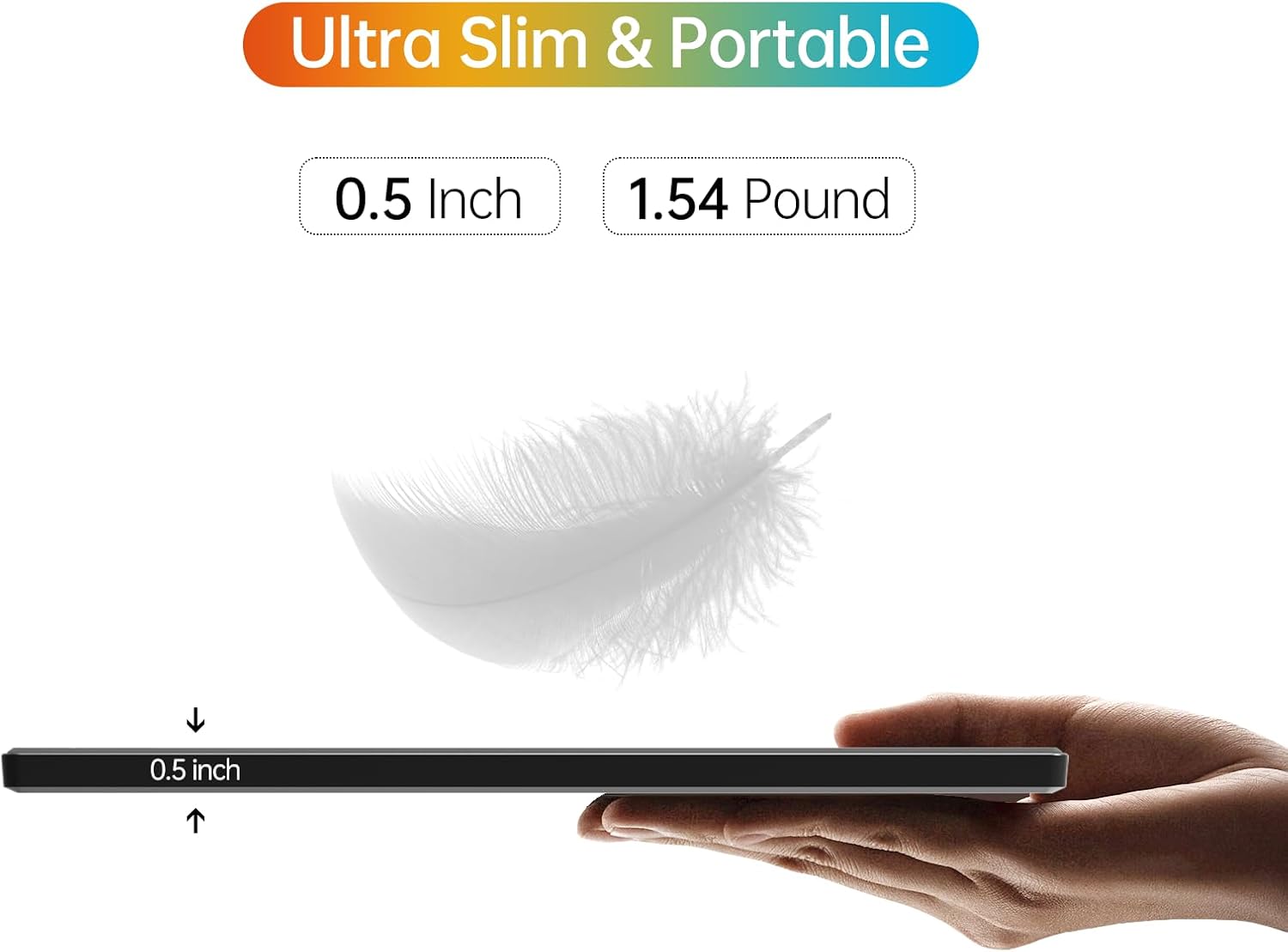 FHD 1200P Portable Monitor – This ForHelp Portable Monitor for Laptop with a A Full HD 1920*1200 resolution and 16:10 aspect Ratio, advanced IPS Matte screen support 178°full viewing angle,100% SRGB Gamut 400cd/m² Brightness With a 60Hz resolution, outstanding image quality, and high screen brightness, it delivers stunning visuals. No flickering, eye-care, and make it easier to watch for a long time,