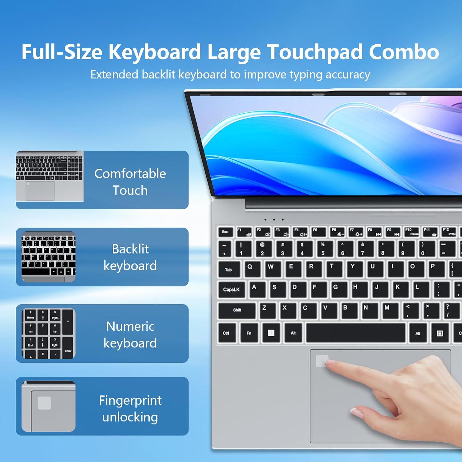 【15.6″ HD Display for Clear Viewing】Experience the KUMNOSAL 15.6-inch IPS (1920×1080) HD display laptop with 16:9 aspect ratio and UHD Graphics, making it perfect for work presentations, watching videos, or studying.
