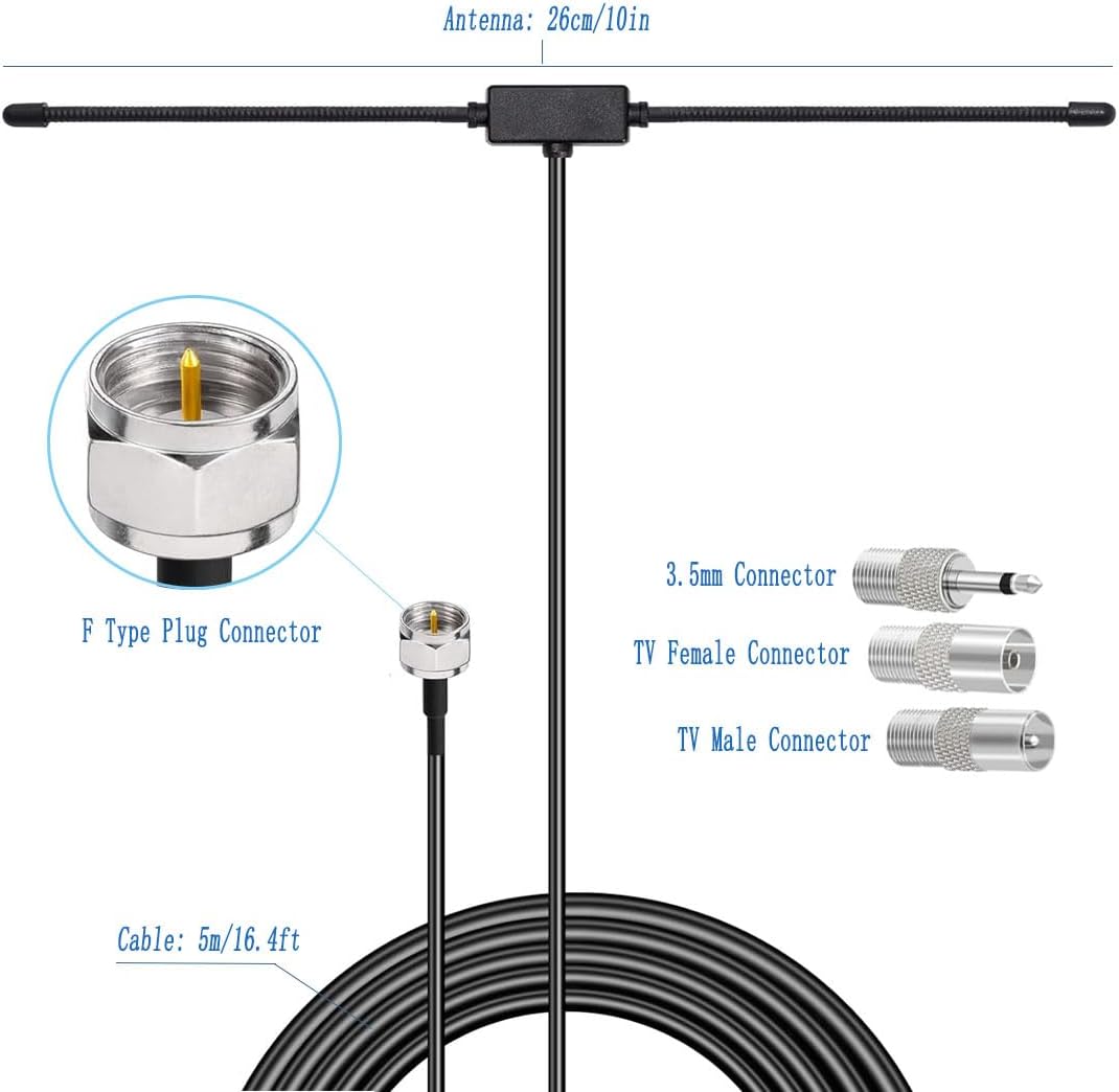 16feet /5m Coaxial Extension Cable, Antenna Connector Interface: F Type Plug Connector; Included Connector Adapter: TV Female Socket Connector Adapter, 3.5mm Audio Plug Connector Adapter, TV Male Plug Connector Adapter;