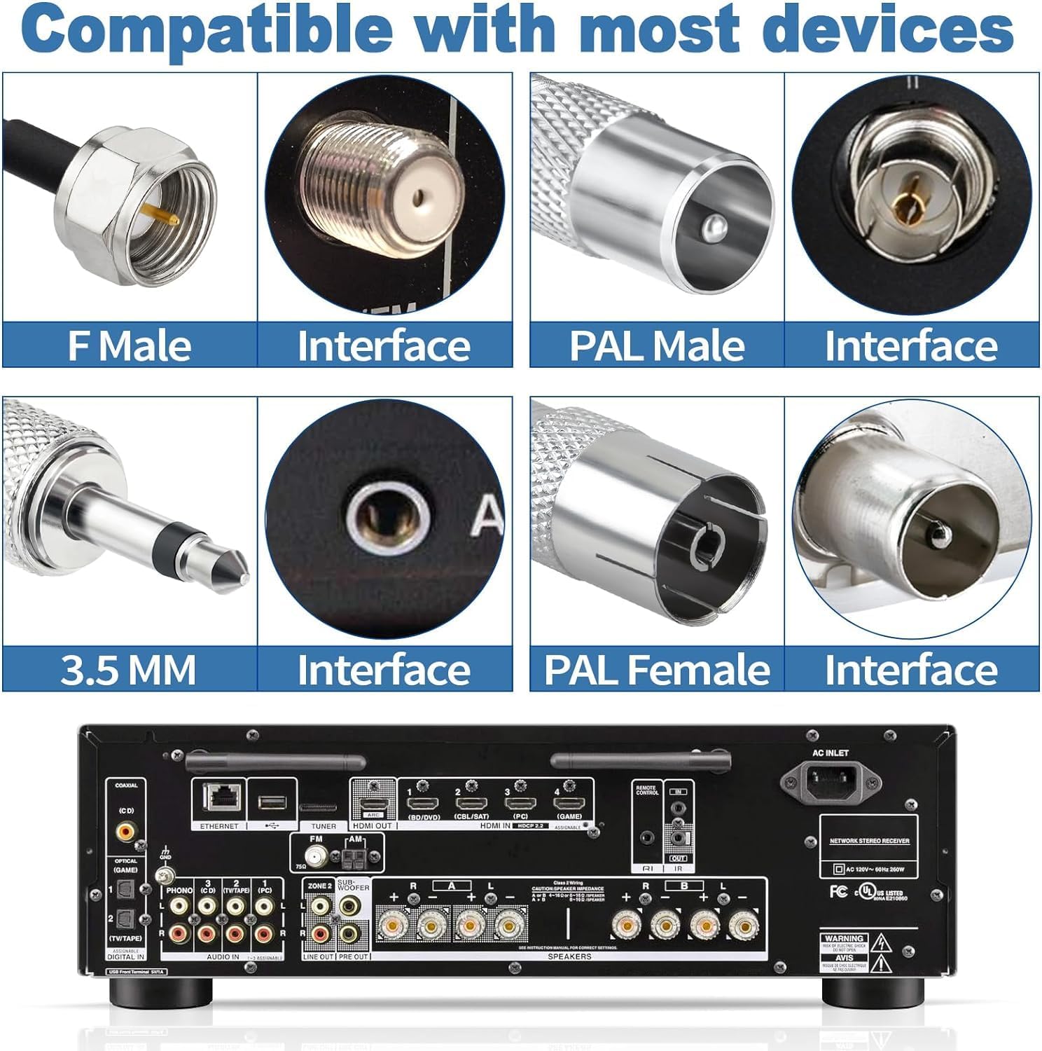 Works with Yamaha, JVC, Sherwood, Pioneer, Panasonic, Onkyo, Sony, Bose Indoor Sound Radio Home Stereo Audio video Receiver, 75 ohm UNBAL.