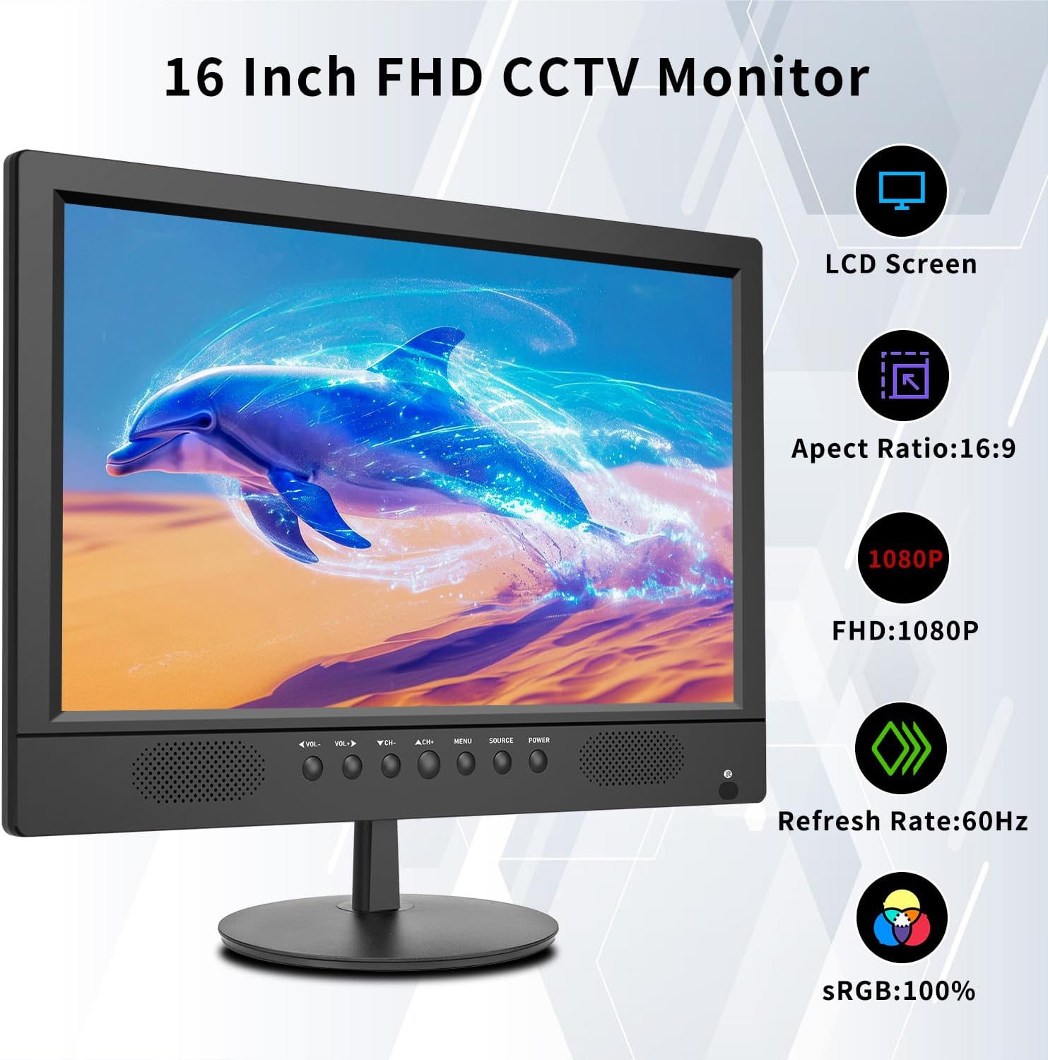 16inch LED Security Monitor, Ultra fine pixel pitch for close viewing in surveillance applications,170 °viewing angle for fewer restrictions on your range of vision