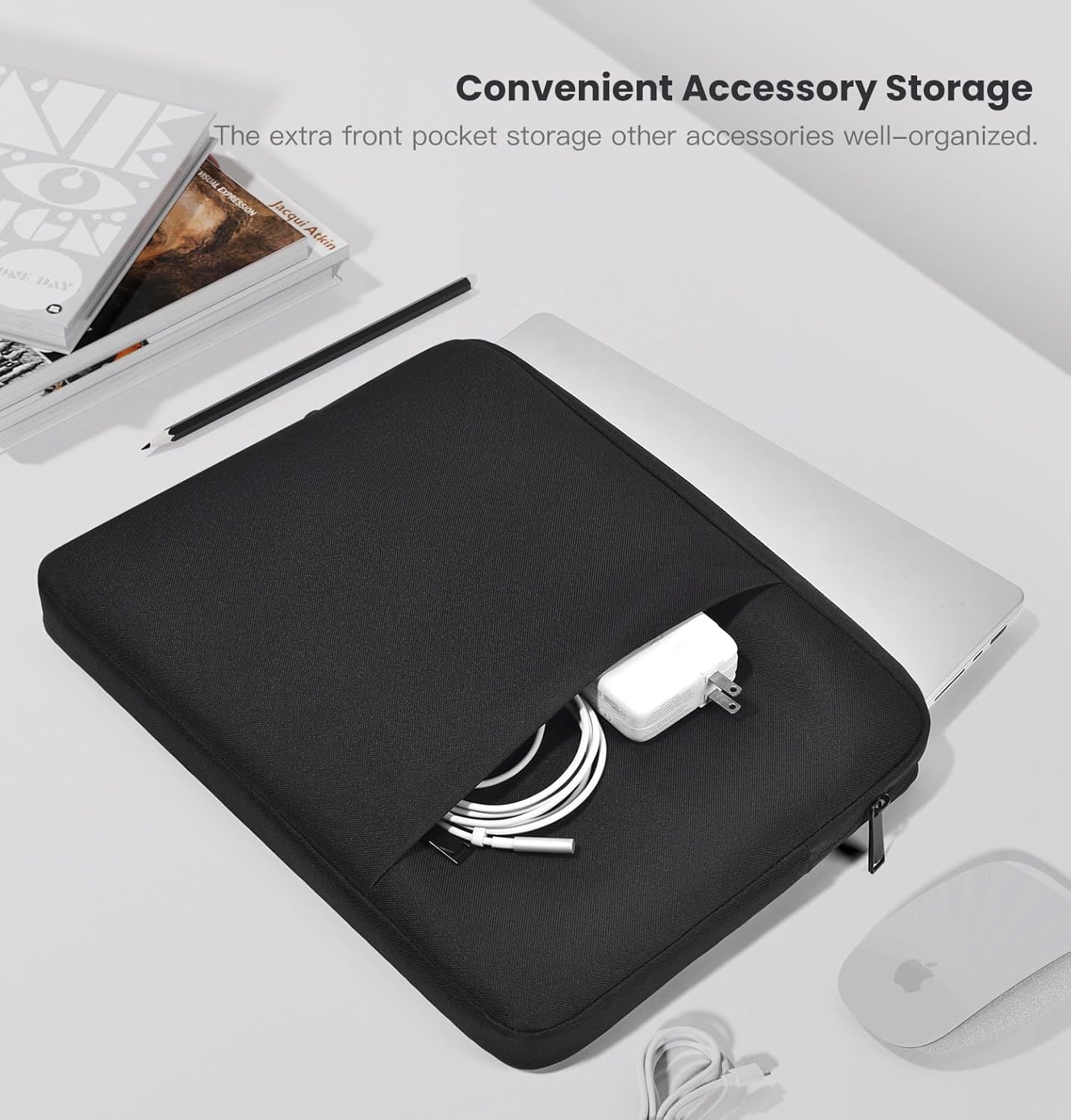 【Convenient Accessory Storage】-A dedicated, zippered front pocket offers ample room for charger, mouse, and cable, keeping all your essentials organized and within easy reach.