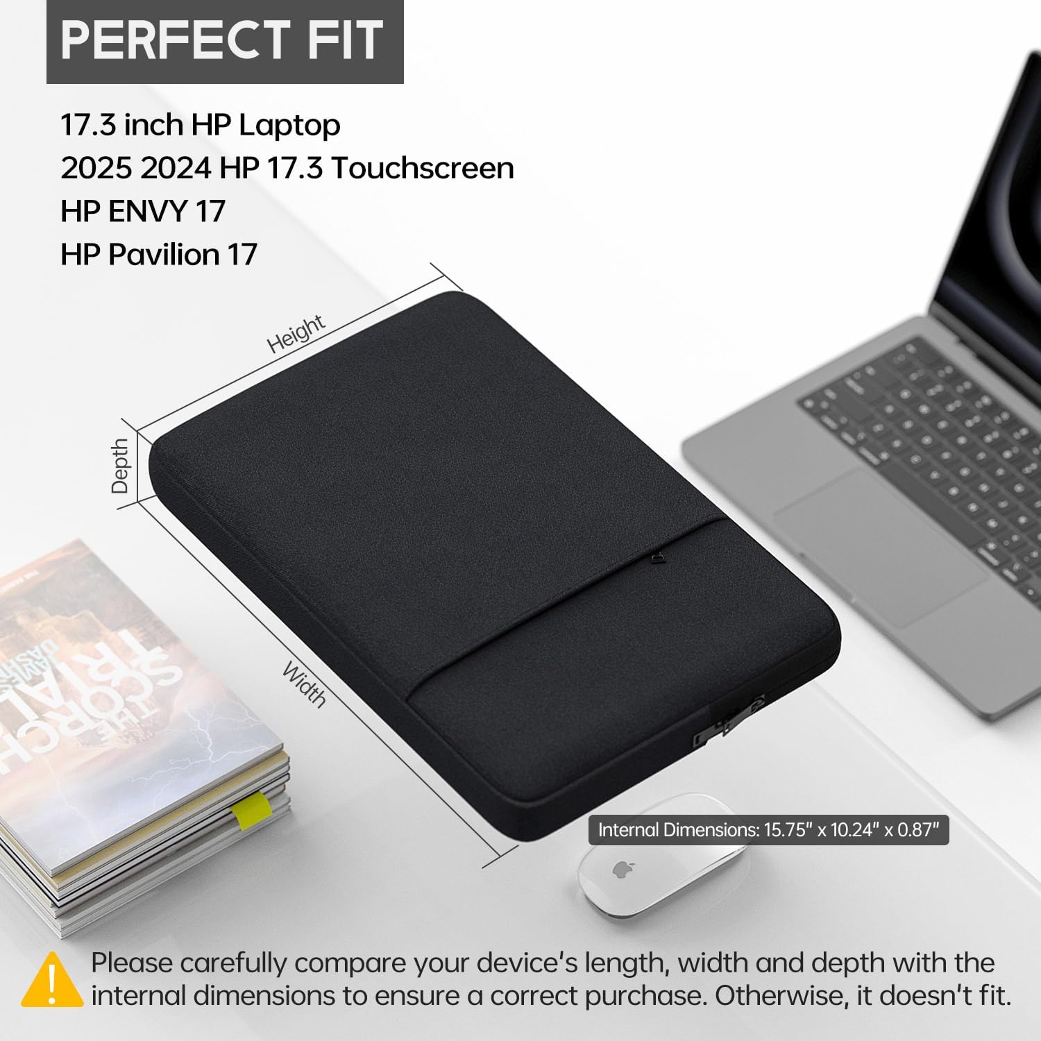 【Compatibility】-17 inch laptop sleeve compatible with 2025 2024 HP 17.3 Touch Screen Laptop, New HP ENVY 17 17t 17m 17.3, HP Pavilion 17.3 17z 17-cn 17-cp, ASUS Vivobook 17.3, LG Gram 17, MSI Katana 17 and other most new version of 17 inch laptop model, but NOT all. Please carefully measure your laptop’size, compare with the inner dimensions of our laptop bag to ensure perfect fit.