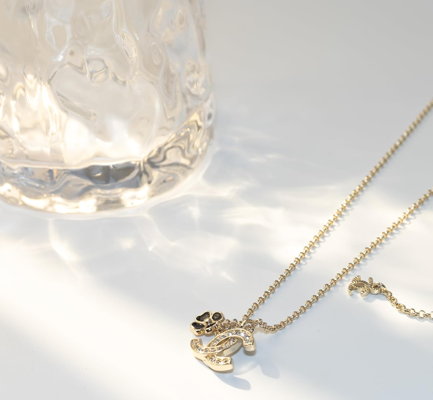 18K Gold Designer Pendant long Necklace for Women initial Black Flower Necklace Fashion Gift for Birthday Mother’s Day and Anniversary