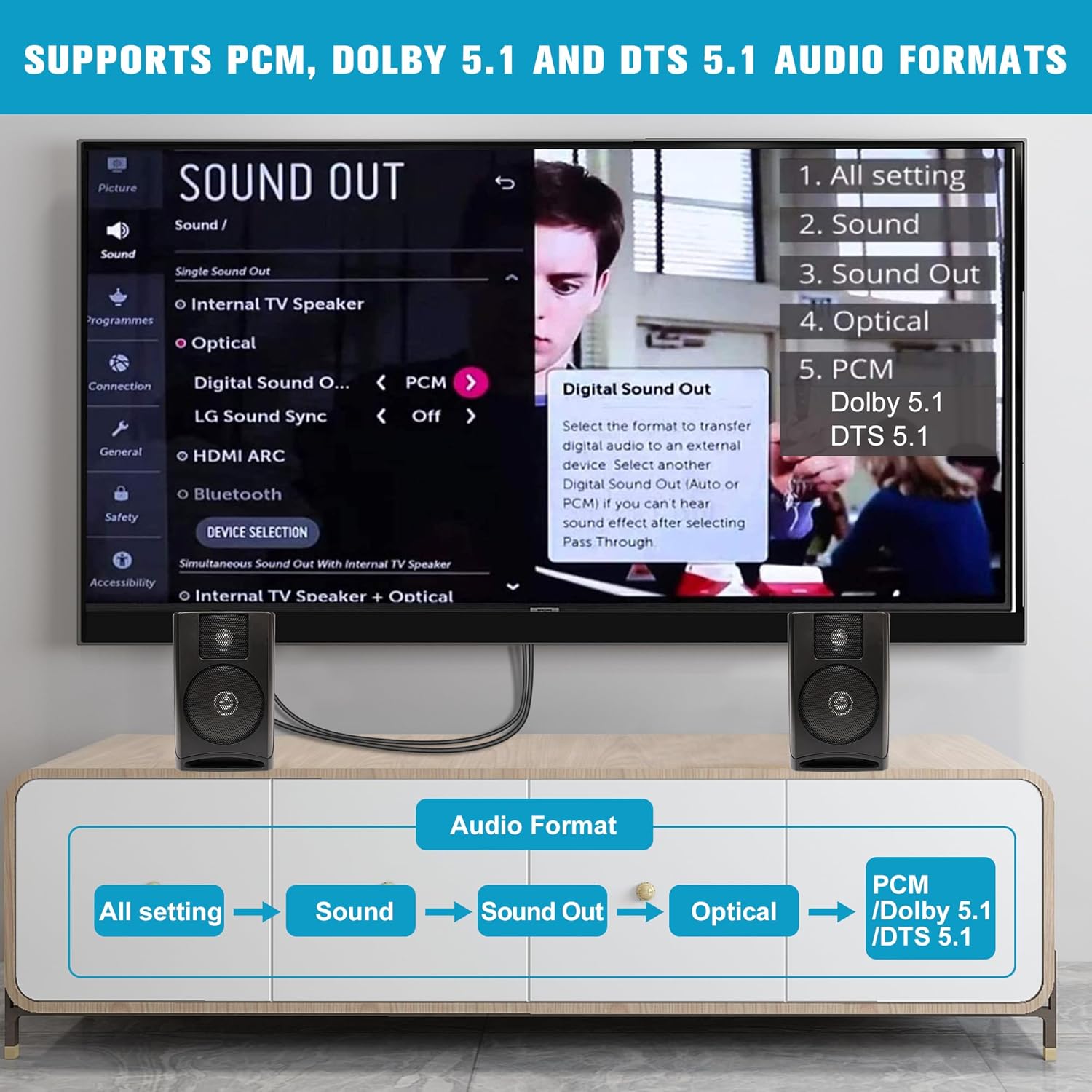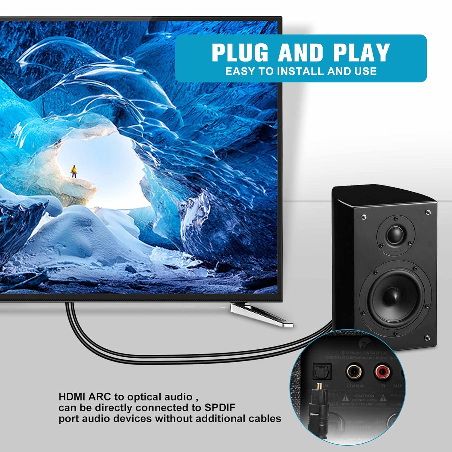 HDMI ARC to Optical Cable(1.15m/45.2in): The ARC Audio Extractor connects to an ARC-compatible TV, allowing the TV’s audio to be transmitted to a sound system via the converter’s built-in optical SPDIF digital audio cable. The ARC audio converter Only for TV with “ARC” interface,Not for “HDMI eARC”or “HDMI ” interface
