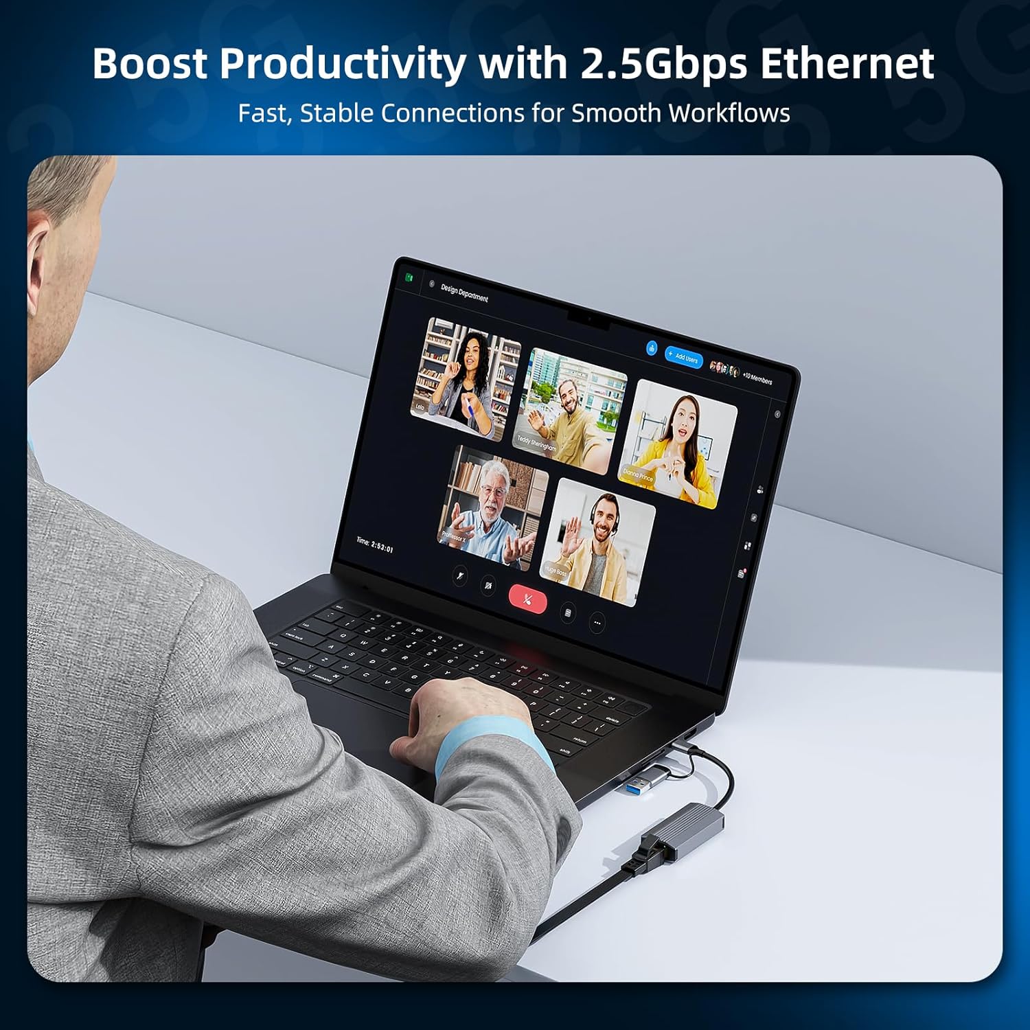 【Faster and Stabler】The ethernet to usb c is equipped with an updated chip, ensure the network always at peak run. When running 2.5Gb at full speed, it consumes low power, reduce heat dissipation and provide stable performance.