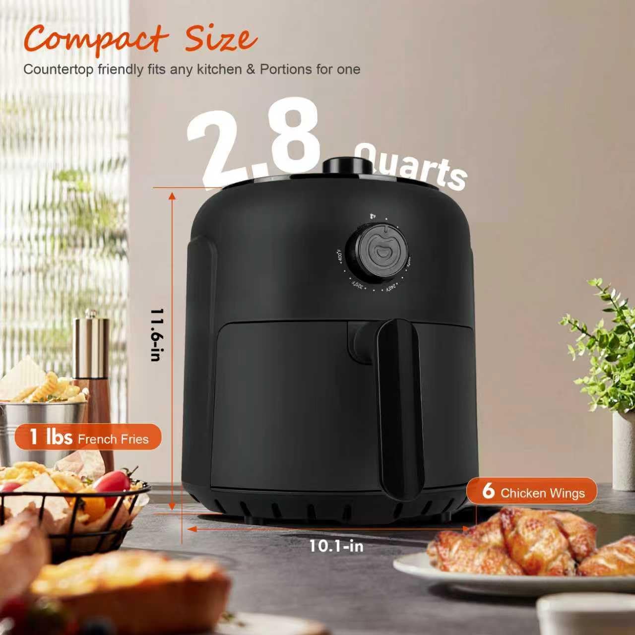 2.6QT Personal Mini Air Fryer, Dial Control Temp & Time, Nonstick Basket Dishwasher Safe, Fast Cooking, Reheat Leftover, Small Air Fryers for 1-2 People, Suitable for Dorm Office Apartment