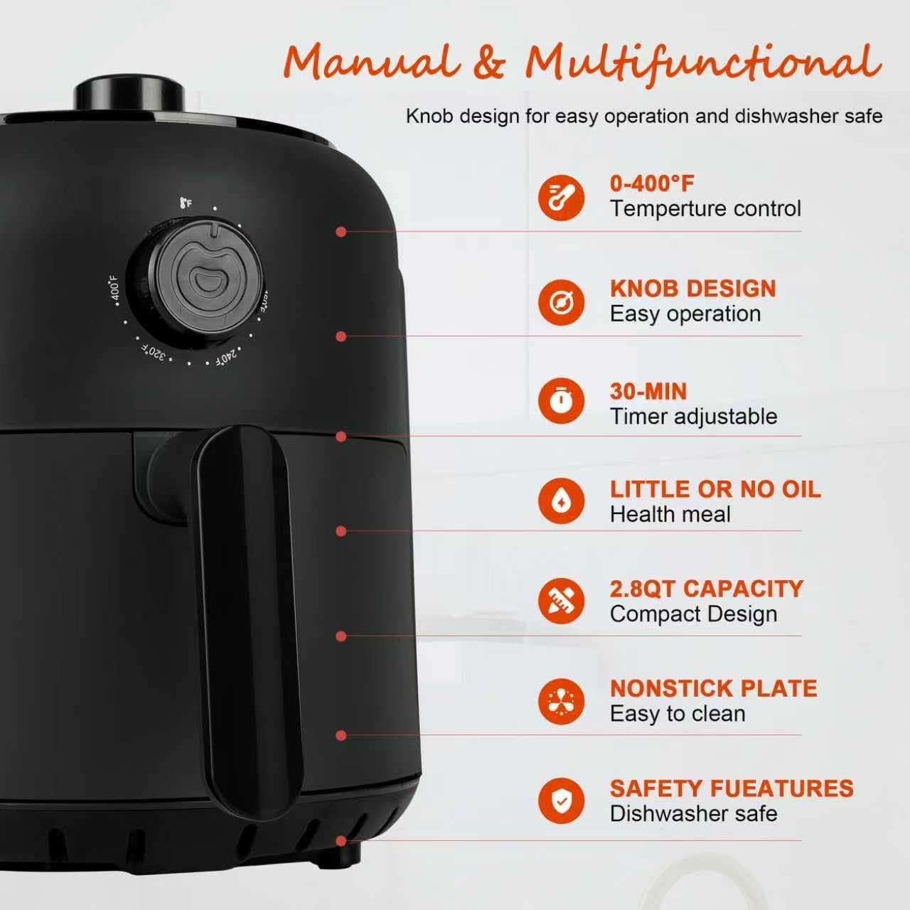 【HEALTHY & FAST COOKING】Enjoy delicious meals with little-to-no oil with advanced air circulation technology. The small air fryer lets you cook healthier, low-fat meals that still taste amazing. Even with no preheating needed, this air fryer cooks frozen food to crispy perfection in a matter of minutes at temperatures ranging from 0-400°F.
