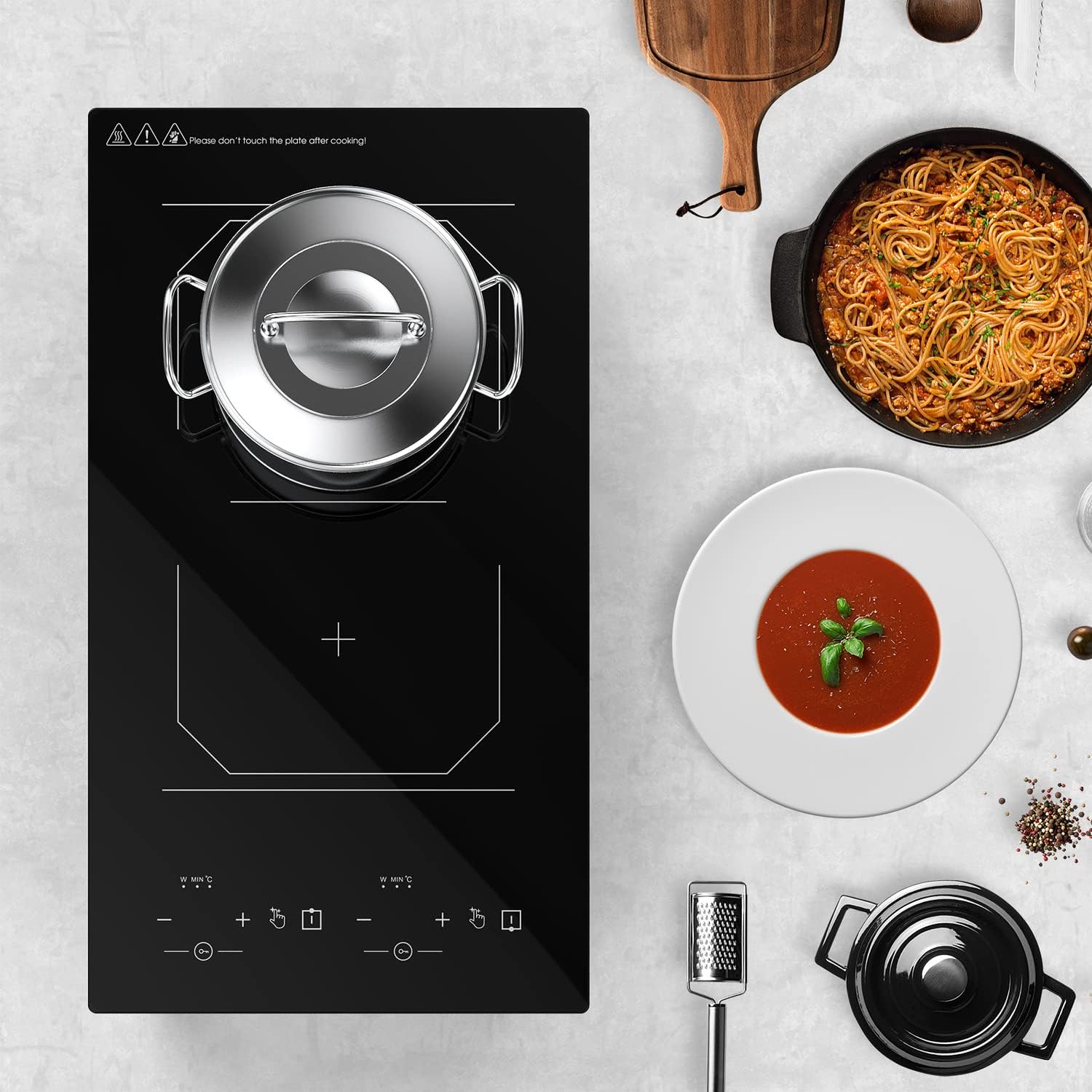 ANHANE Electric Cooktop 2000W Electric Burner, 110v Double Induction Cooktop Built-in, 9 Heating Level, 20 Temperature Ajustement