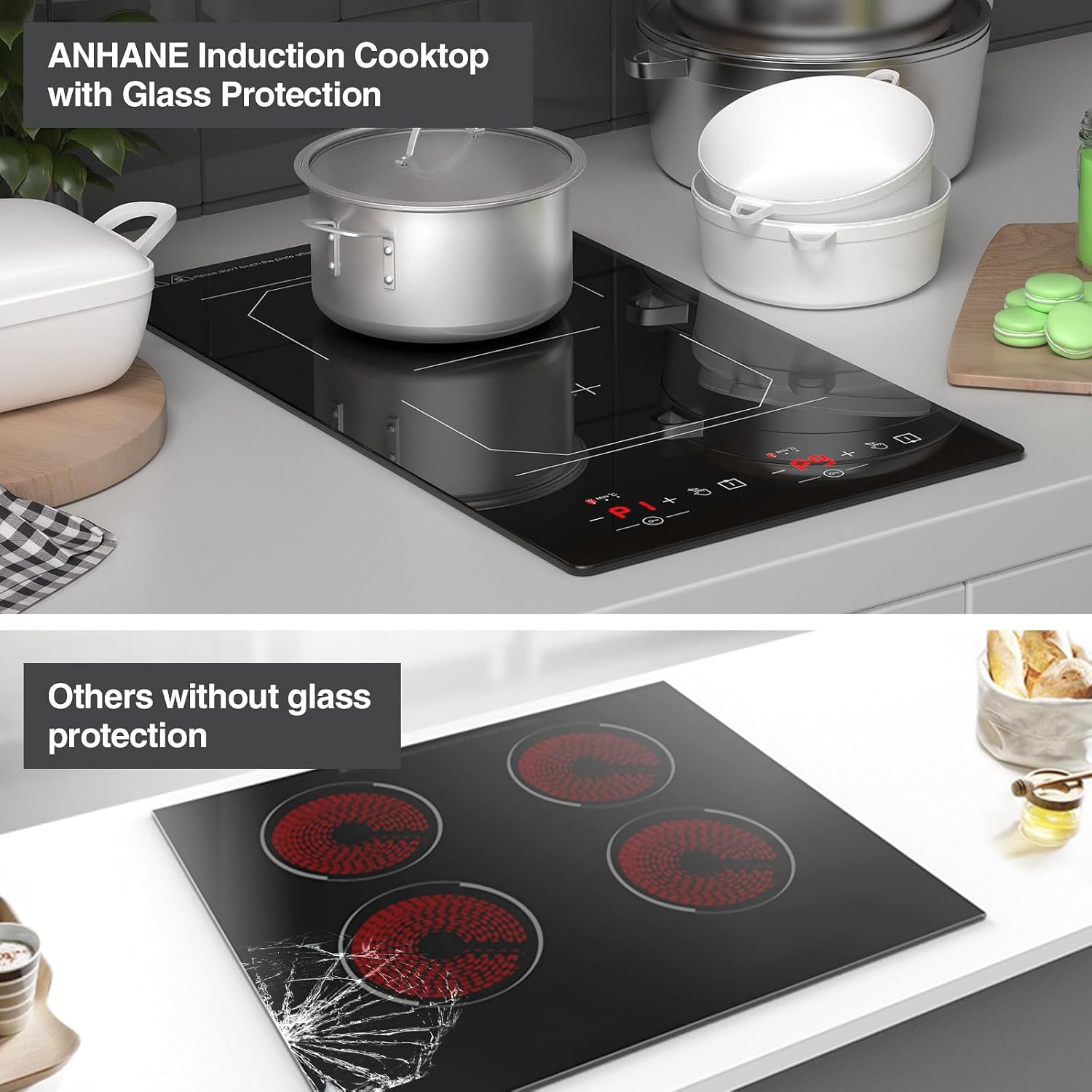 ANHANE Electric Ceramic Cooktop, 30 Inch Built-in Electric Stove Top, 220V 7200W Electric Cooktop with 4 Burners, 9 Heating Level