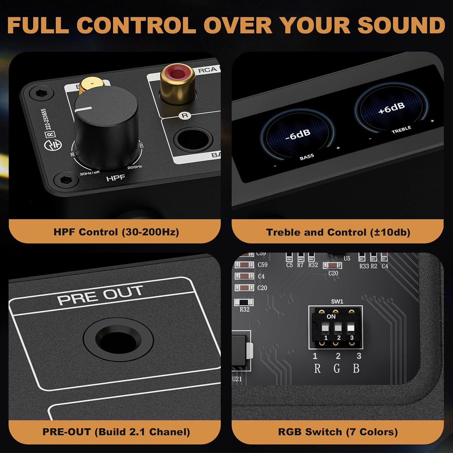 Engineered for Everyday Convenience: With a 12V trigger, infrared remote, one-touch mute and Bluetooth reset, D1 simplifies your daily audio setup. Fine-tune your sound with ±10dB tone control, while internal RGB lighting adds a refined, modern glow. Enjoy seamless operation from start to finish.