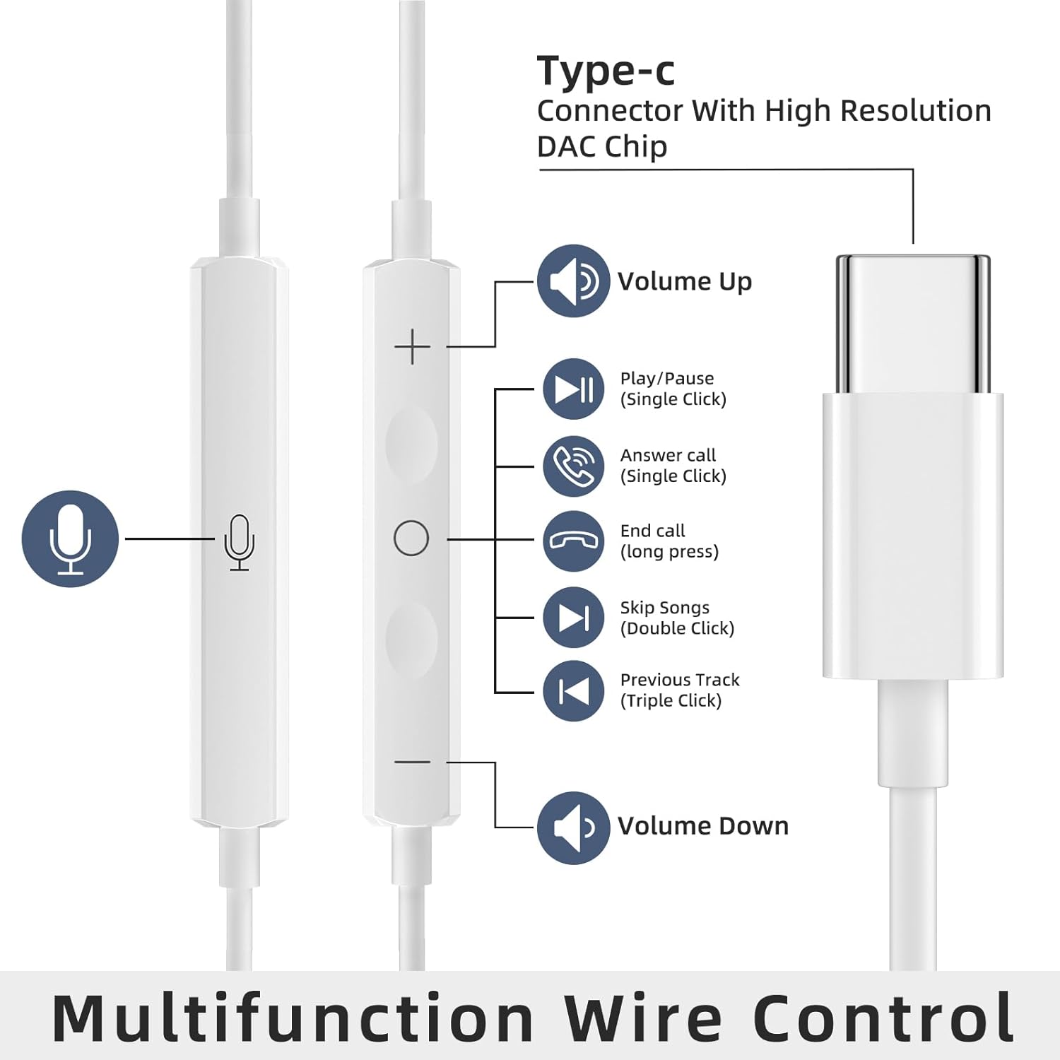 The cord is strengthened for longer durability. Support Volume+/-, Last/Next Track, Pause, Answer/End/Reject Call to free your hands when listening to music, having phone calls while driving, walking, exercising, working, shopping, etc,NOTE: If the earbuds has No Sound when using on mobile, go to Setting-Developer Options, find Disable USB audio routing, Close this option.