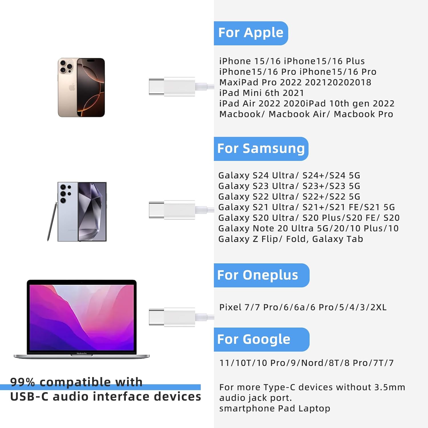 USB C Headphones for iPhone 16 Pro/16 Pro Max/16/16 Plus,15/15 Plus/15 Pro/15 Pro Max, iPad Pro(M4), 10.9″ iPad 10th Gen, 12.9” iPad Pro 6th/5th/4th/3rd gen, 11” iPad Pro 4th/3rd/2nd gen, iPad Air M2/5th/4th, iPad mini 6th, Macbook Air Pro; Google Pixel 9 8 8 Pro 7 7 Pro 6 Pro 6a 6 5 4XL 3XL 2; for Samsung Galaxy S24 Ultra/S24+/S24,S23 FE/S23 Ultra/S23+/S23,S22 S21 S20 Ultra FE,Note 20 Ultra/20/10+,A55/A54/53,Tablet A9+, Z Fold5/4/3/2,Flip5/4/3/2, 10T/10 Pro/9/Nord/8 and more USB C devices