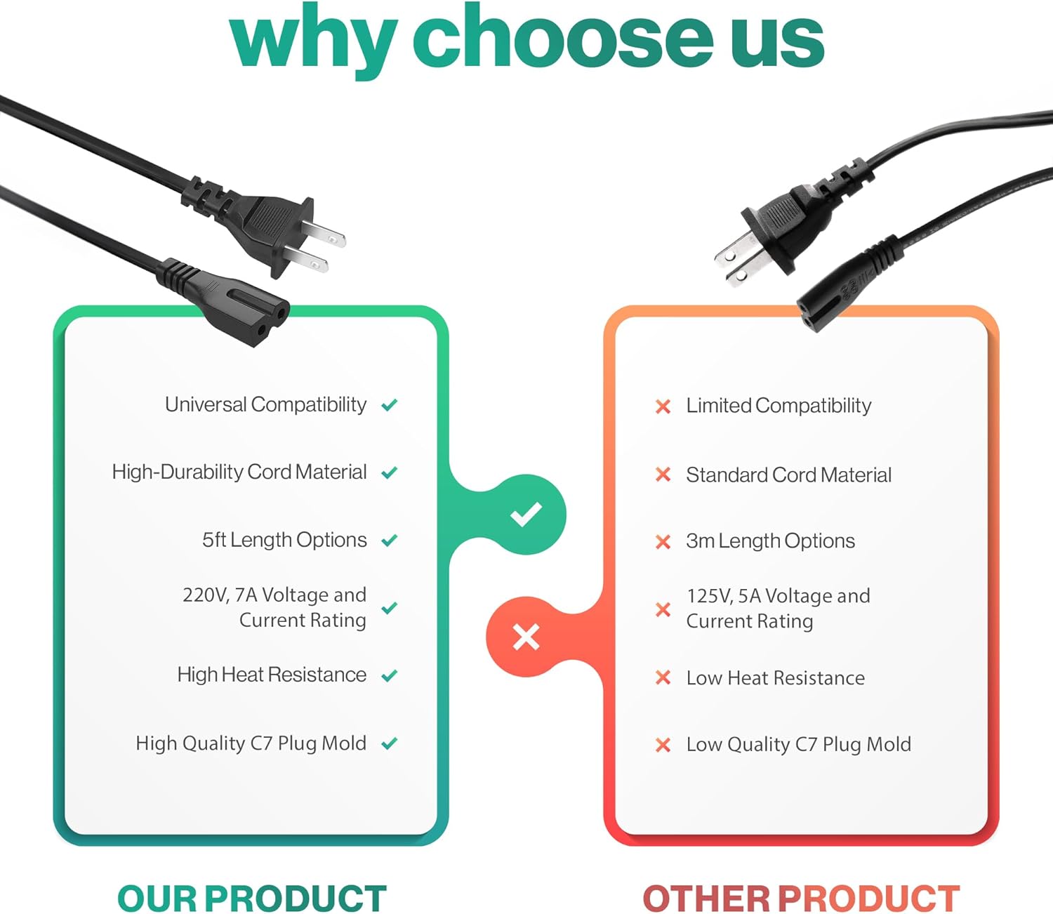 COMPATIBILITY: Our power cords are compatible with a wide range of devices including Vizio TVs series D/E/M, Bose Home Theater Sound System, Sony Playstation PS1/PS2, Singer sewing machines and more.