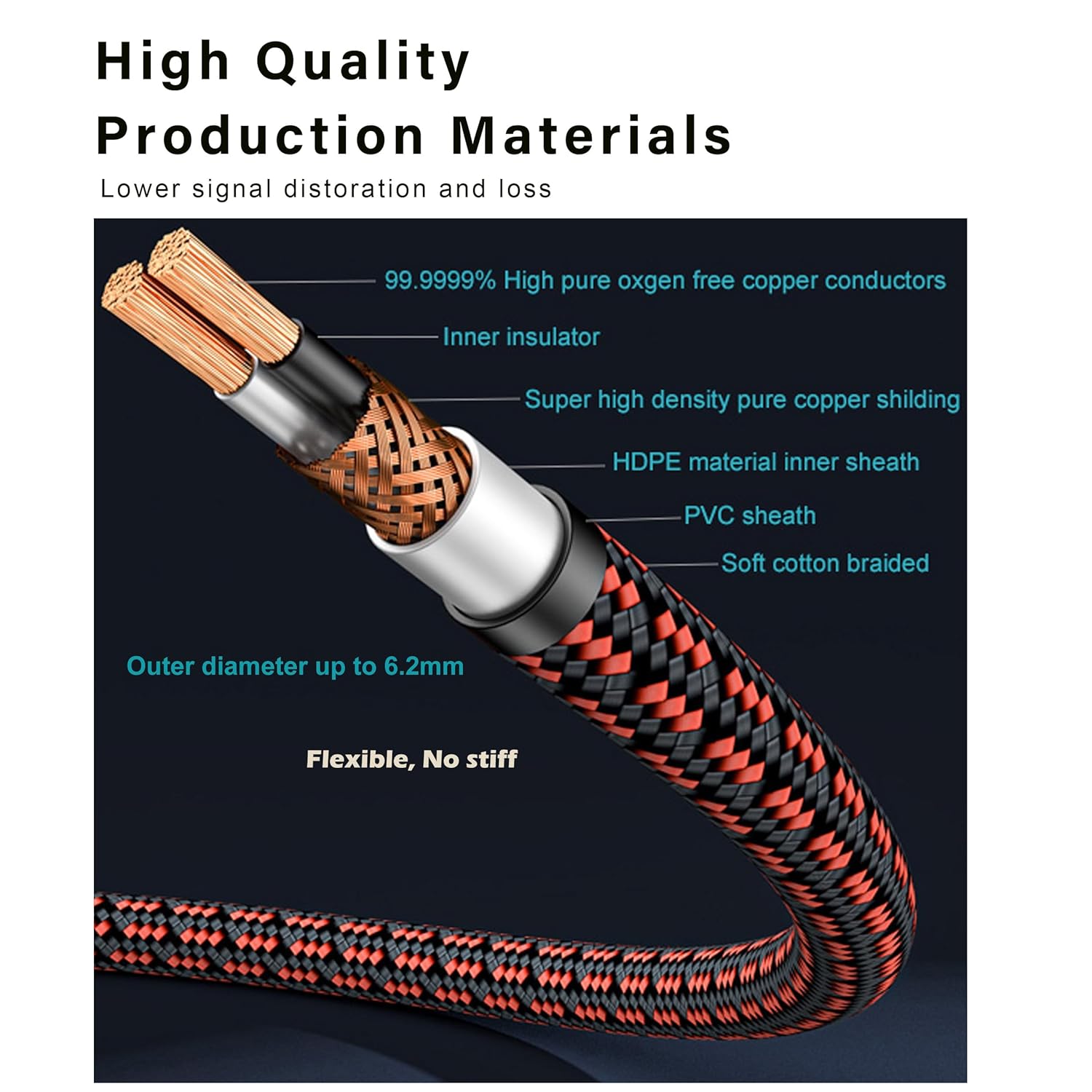 【Long-Lasting Performance Design】With a tested 10000+ bend lifespan, Cotton braided audio cable adding to the durability, flexibility and tangle free, ideal for home-entertainment and high-fidelity Hi-Fi systems