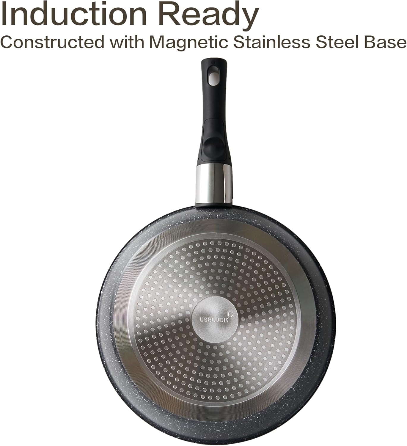 【Non-Stick Granite Coating for Effortless Cooking】This nonstick granite cookware set ensures that you can cook with less oil, making it ideal for a healthy, low-fat diet. Free of PFOA, Pb, and Cd, its durable, stain-resistant surface promises long-lasting performance for all your cooking needs