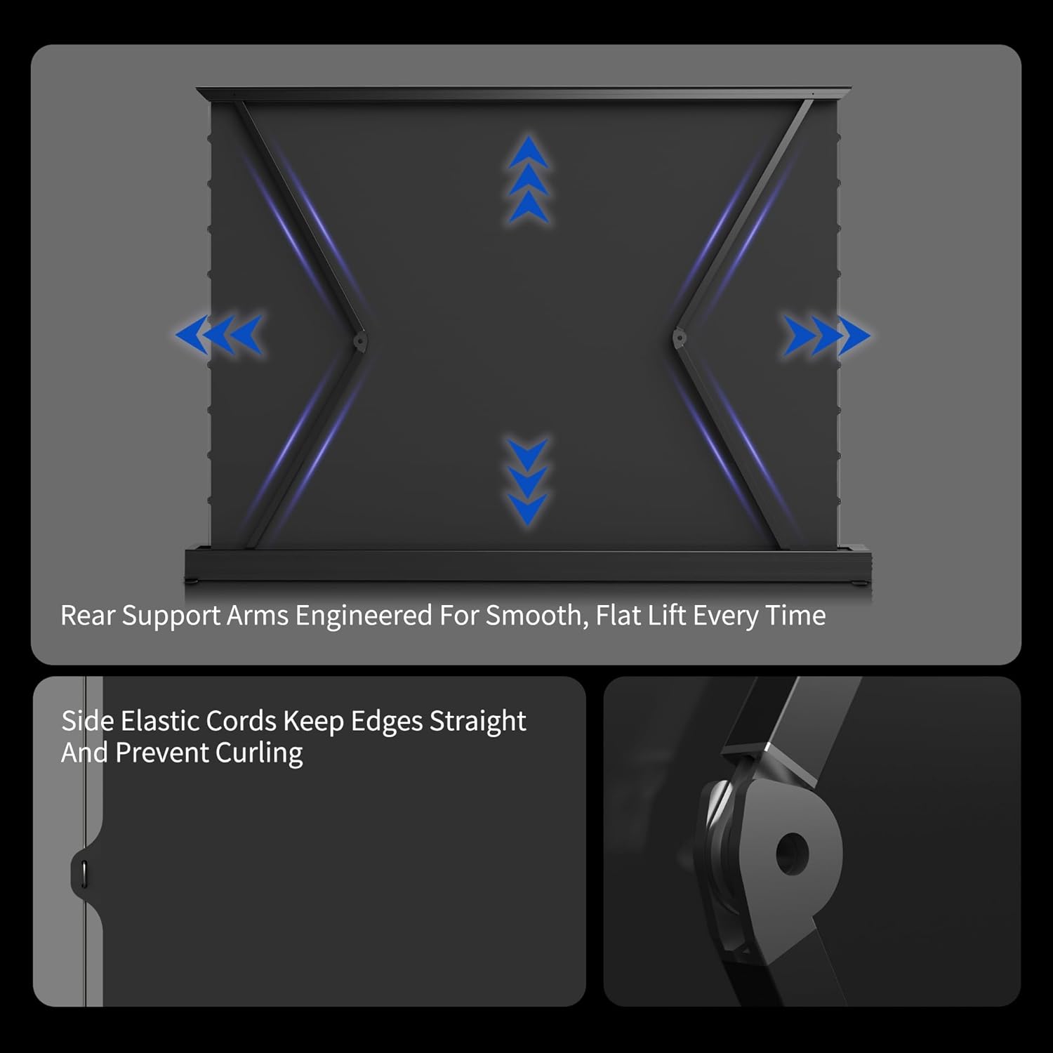 Automatic levelling system: When it reaches its maximum height, it descends approx. 5 cm (normal behaviour). Includes USB trigger for smart control synchronised with projector and voice functions.