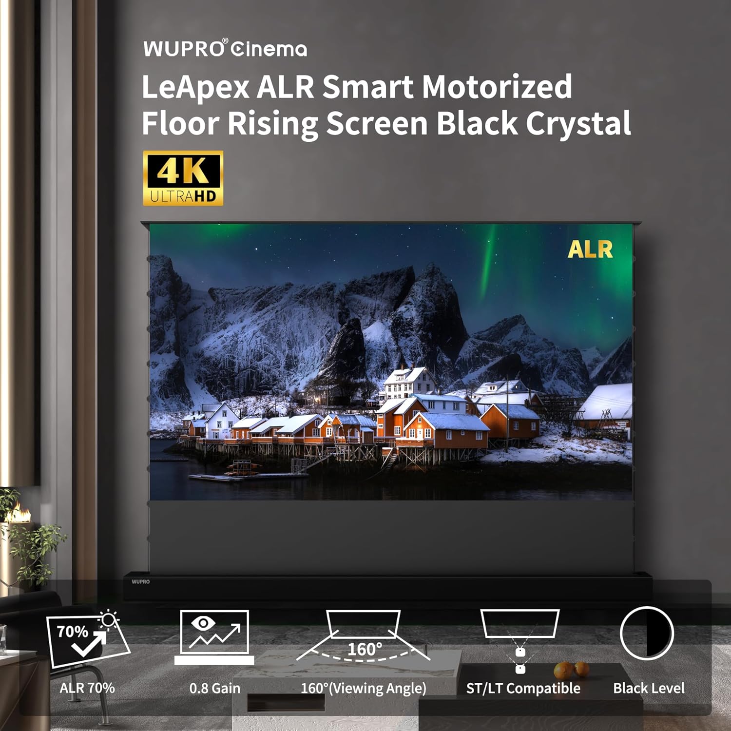 Classic LeApex automatic screen magnification series – Black Crystal, with a contrast gain of 1.5, can display more details, richer colours and more image layers, allowing you to enjoy the superb image quality of Full HD 4K/8K films.