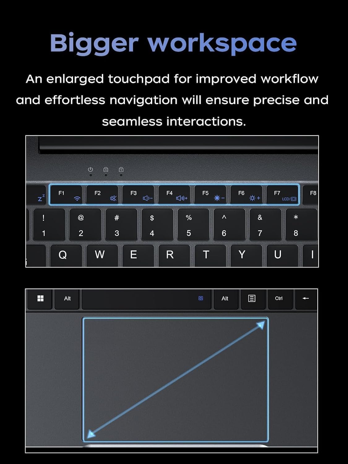 Higher Performance: The laptop uses the latest 12th Gen Intel N150 processor (4C/4T, 6MB cache, 6W, up to 3.6GHz), which is much higher than the Celeron N5095 or N95, providing more powerful multitasking capabilities.