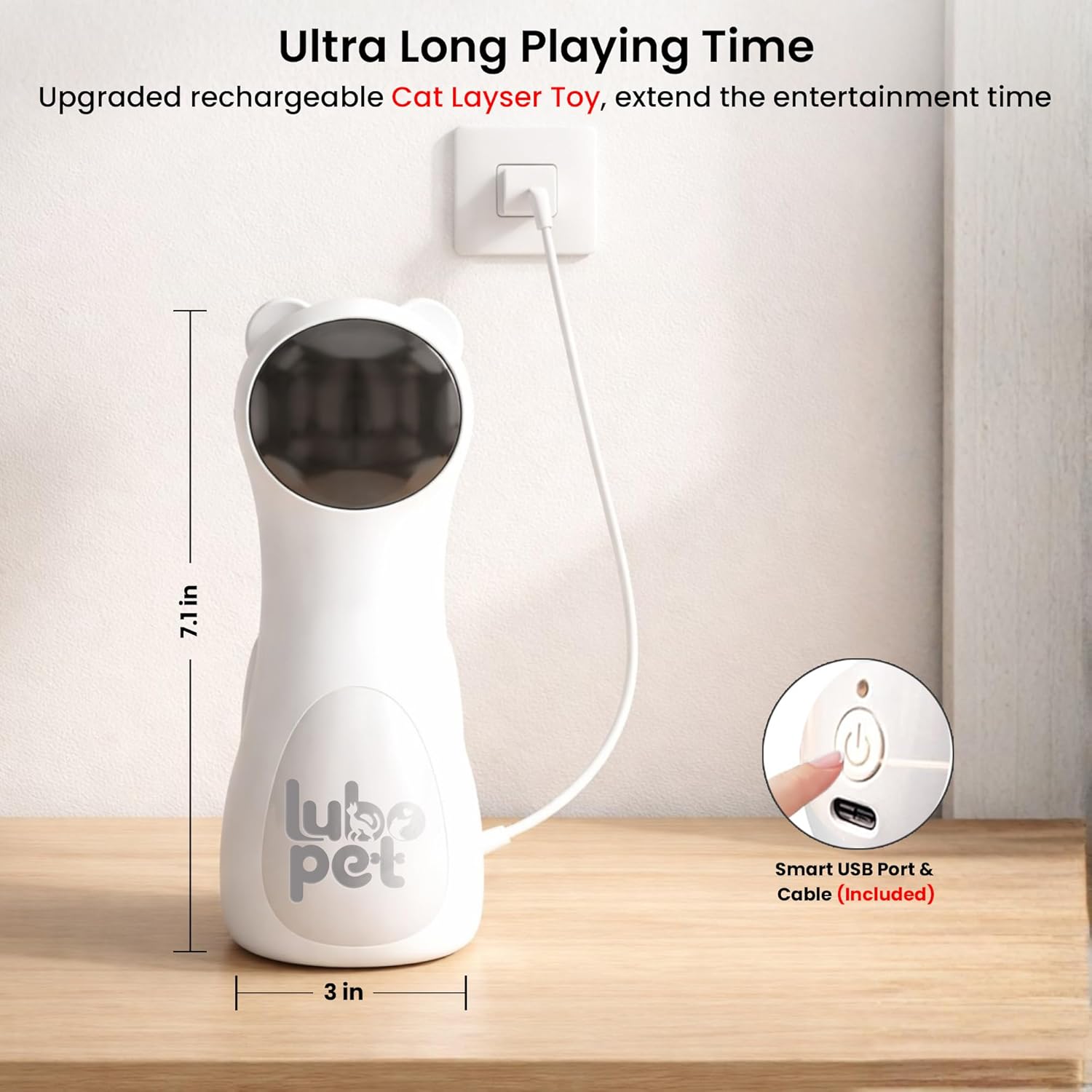 Give your indoor cat the ultimate play and exercise experience with our LuboPet’s Lazer Pointer Cat Toy designed to mimic real prey movement through Real Random Laser Pointer Trajectory for engaging & teasing in a Fun Way for the Cat with adjustable angles, motion-activation, and multi-speed modes. Compact, lightweight, and easy to place anywhere, it keeps your pet entertained with unpredictable red-dot chases, stimulating their natural hunting instinct while promoting daily exercise. The ultra-quiet motor, USB power option, and auto sleep cycle make it perfect for busy pet owners who want safe, hands-free entertainment for their cats.