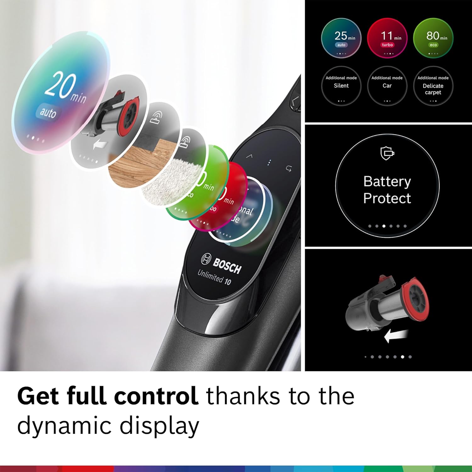 BOSCH’S LONGEST RUNTIME (UP TO 80-MIN) + FAST CHARGER: Clean across different rooms and floors without interruptions thanks to the powerful 4.0Ah battery. Plus, our fast charger allows for up to 3x faster charging* so your Unlimited vacuum is ready to go as quickly as needed