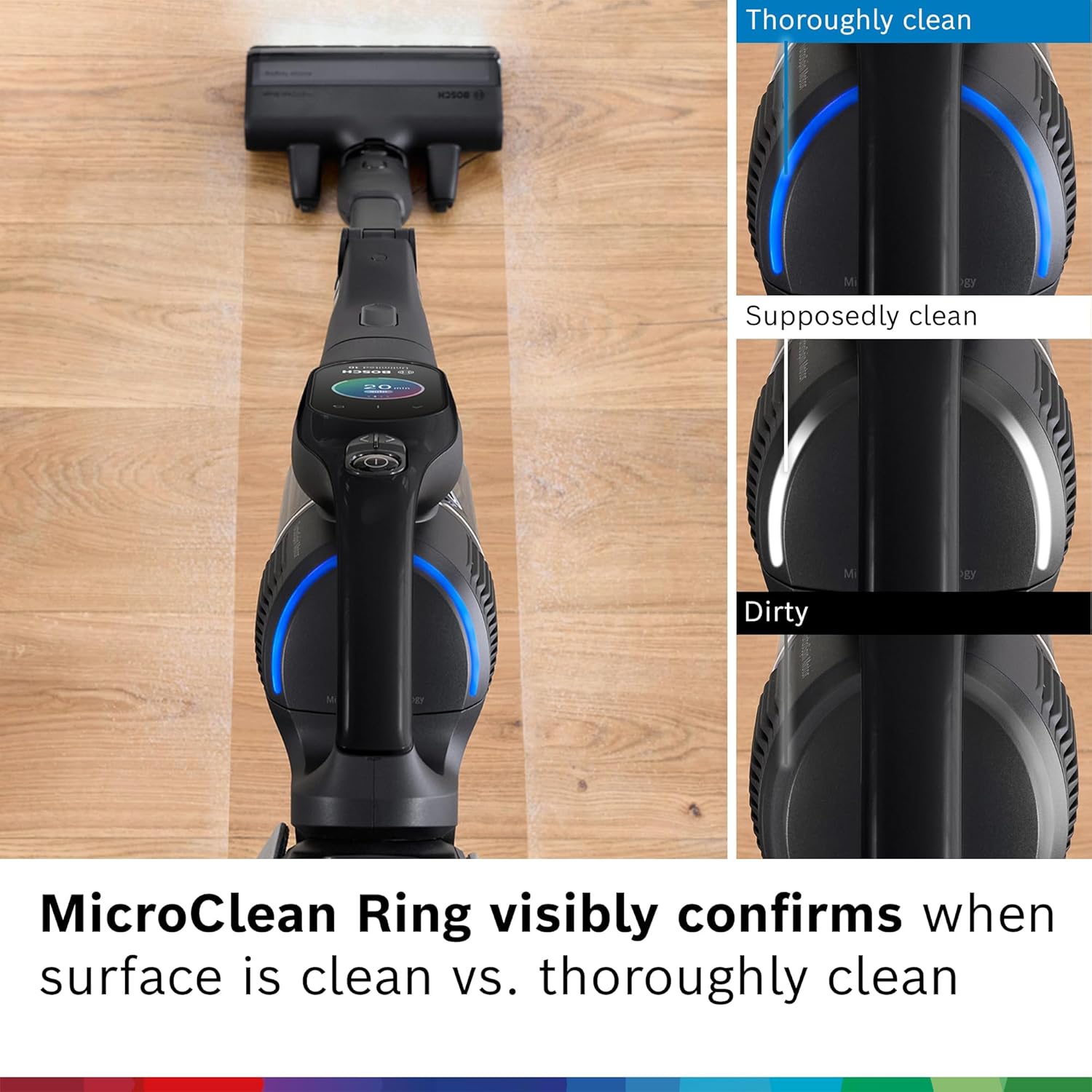 >99.9% DUST PICK-UP¹: The MicroClean Brush removes even the smallest particles down to 0.3 microns from all floor types