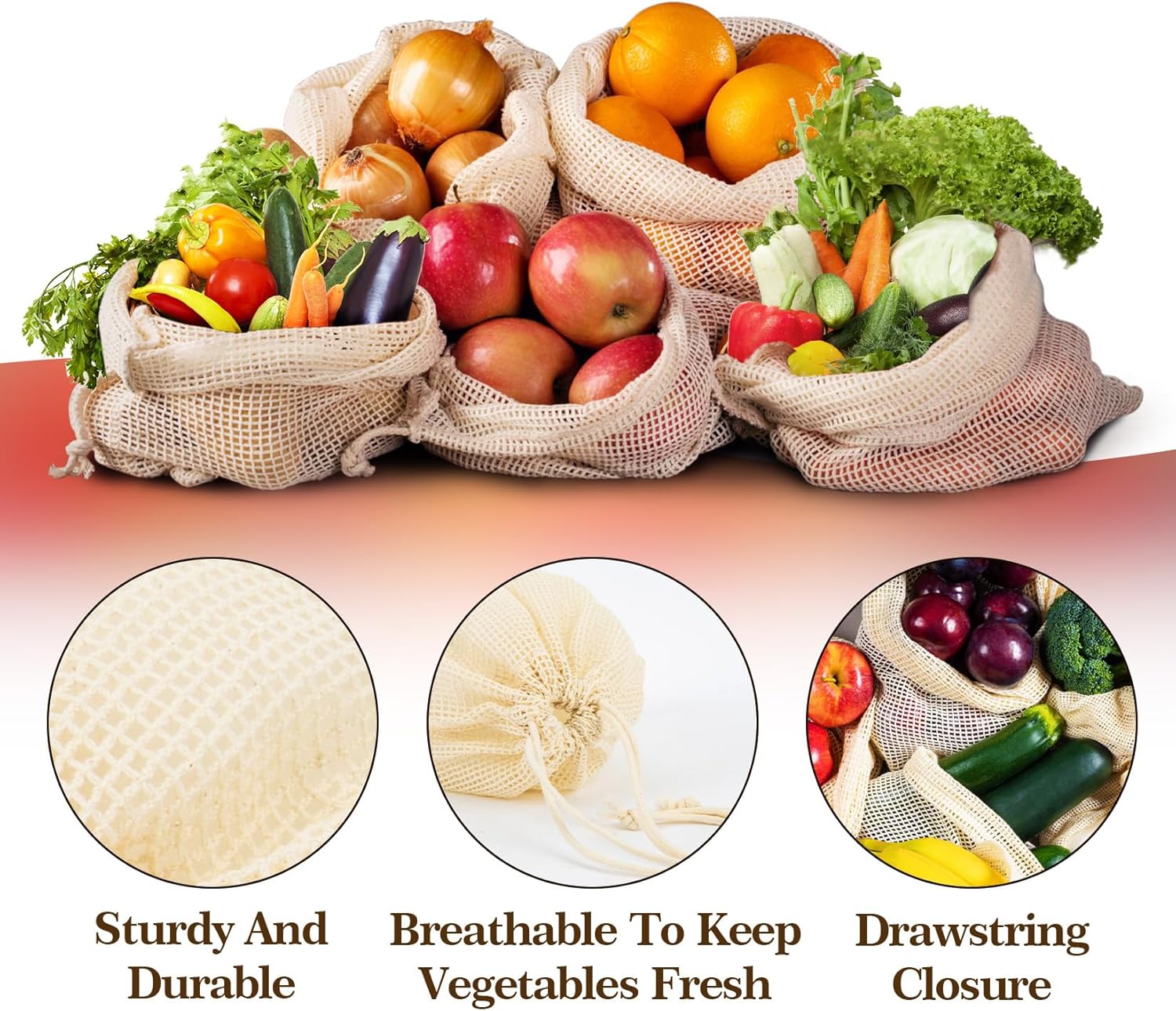 Perfect For Holding Fruits And Vegetables: This set of reusable produce bags is often used when going to wet markets, supermarkets and shops, and at home.Mesh produce bags are perfect for holding vegetables and fruits, such as oranges; potatoes; cabbage to keep fruits and vegetables fresh, and can also be used to store other packaged foods