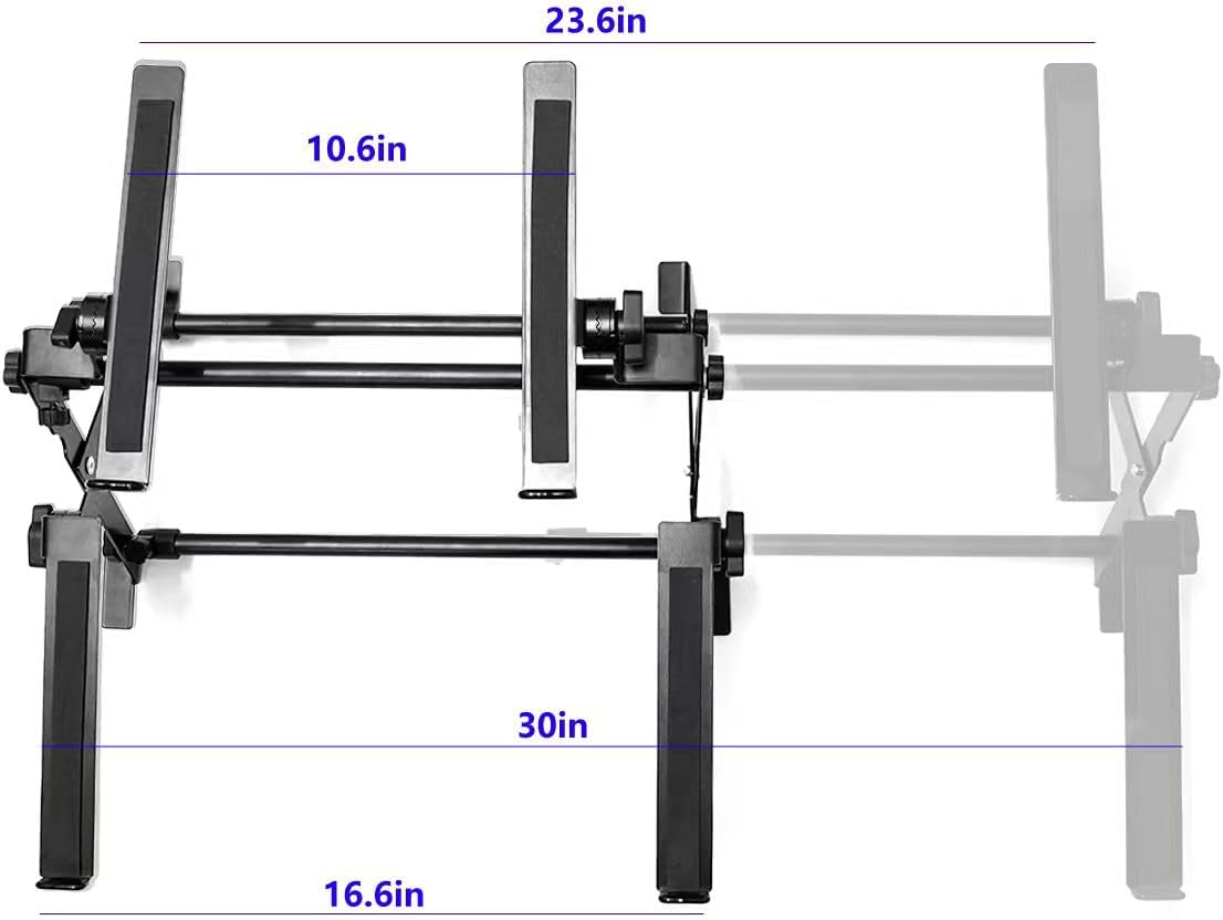 【Extensive use:】Adjustable double-layer DJ controller stand, which can accommodate small keyboards, laptops, DJ mixers, turntables and other audio equipment. It supports multiple devices, saving space and keeping it tidy.