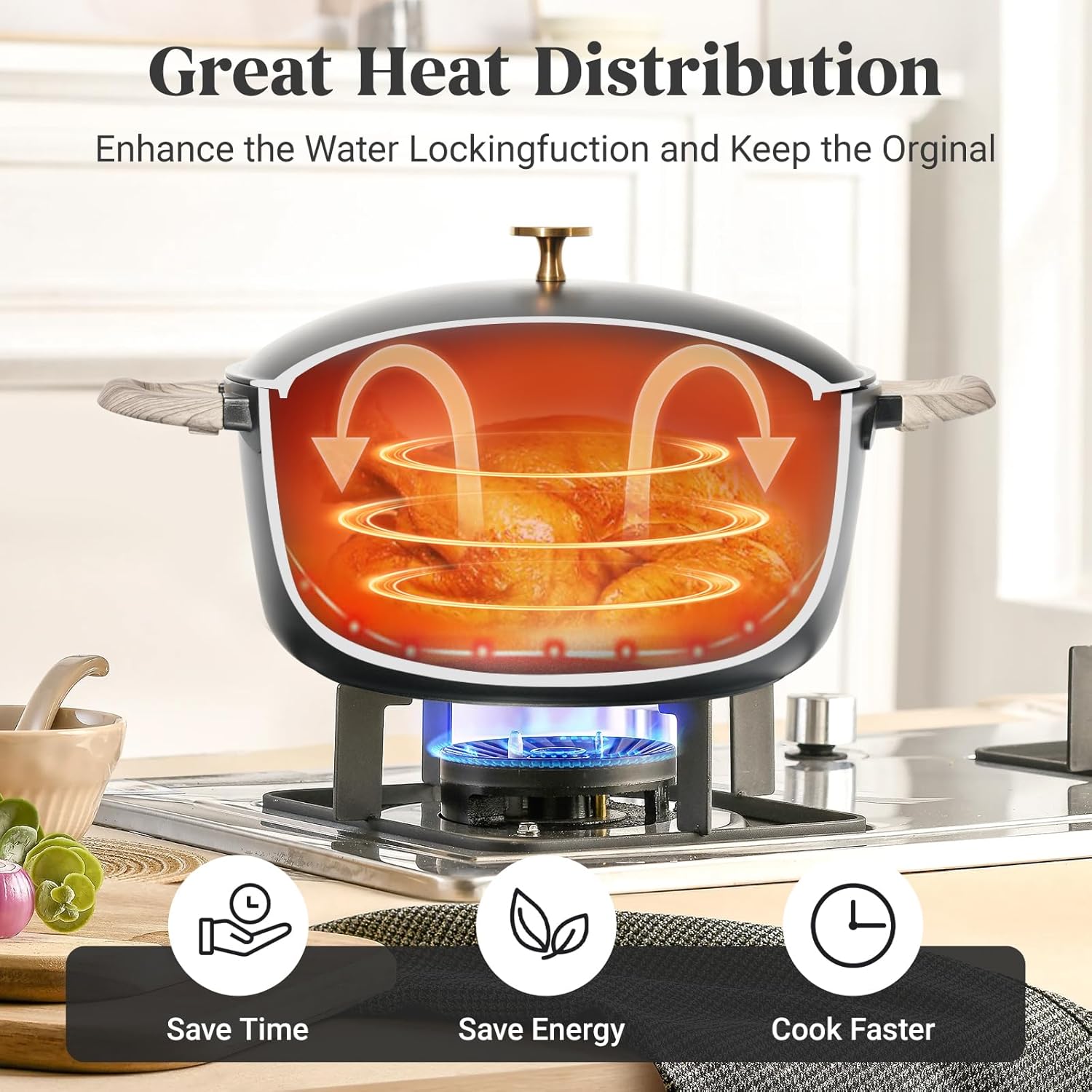 【Even Heating, Every Time】Designed for home chefs who demand speed and precision, this pots and pans set heats evenly with no hotspots, thanks to its extended bottom surface. Compatible with gas, electric, ceramic, and induction cooktops