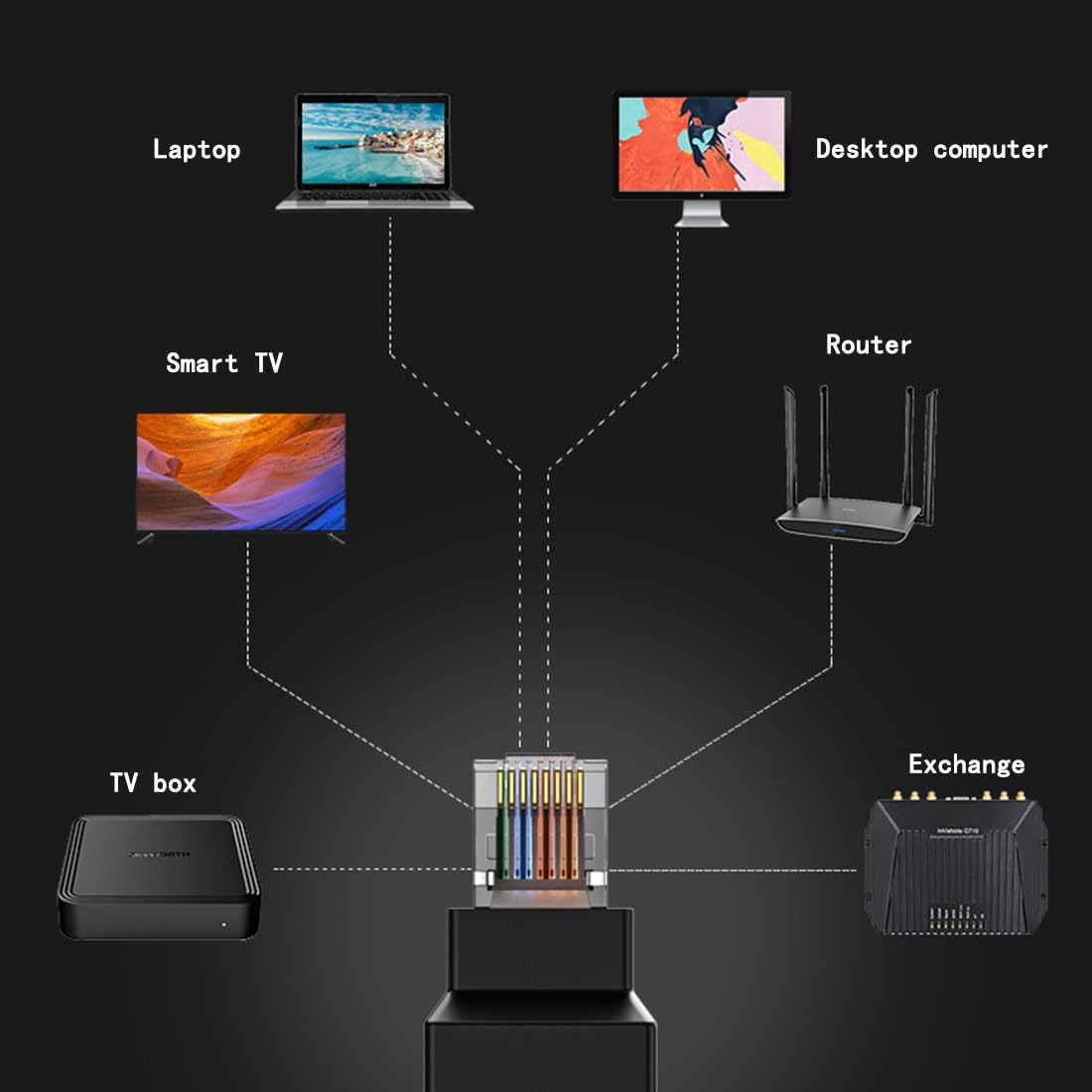 The 90 ° right angled design effectively saves wiring space on the back or side of the equipment, avoiding cable bending losses, especially suitable for compact server racks, game consoles, network switches, and other scenarios. Supports flexible installation in both vertical and horizontal directions, suitable for complex cabling needs such as cabinet wiring and home entertainment centers.