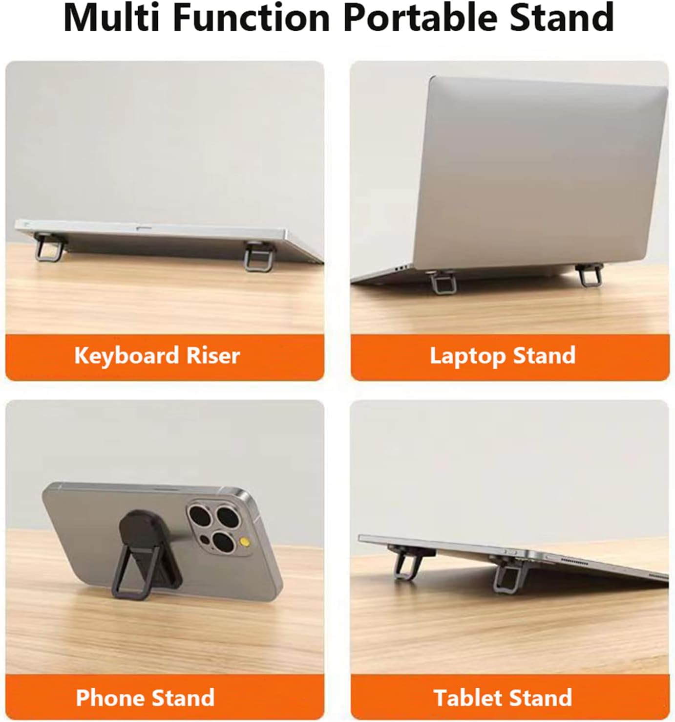 Our mini laptop stand is made of high quality zinc alloy material, which makes it sturdy and durable enough to support the laptop and keyboards