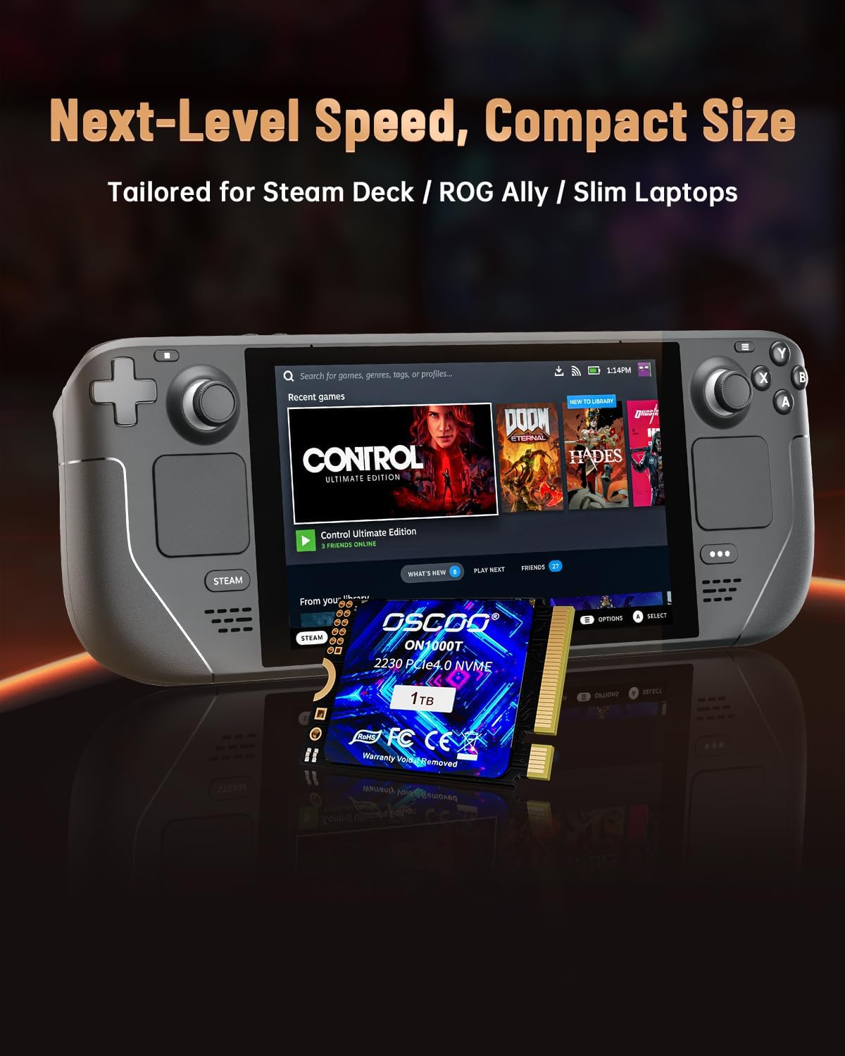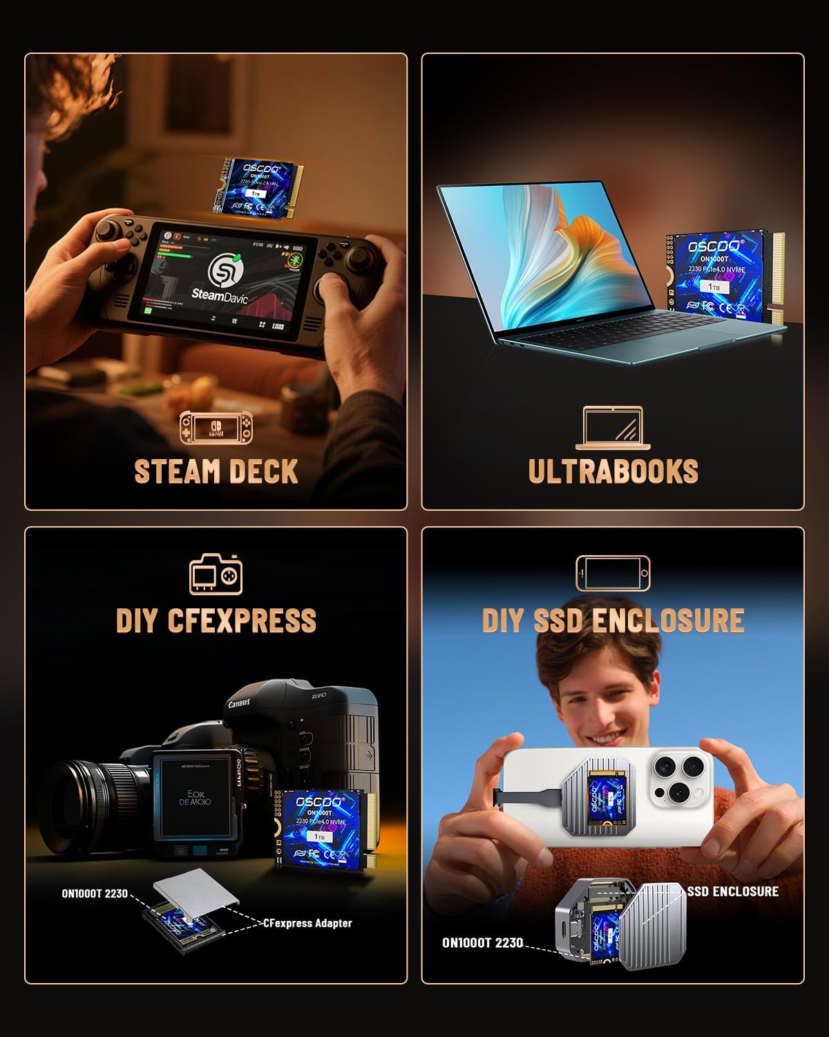 Tailored for Compact Devices: Built in a compact M.2 2230 form factor, the ON1000T is an ideal upgrade for space-constrained systems such as Steam Deck, Microsoft Surface, Intel NUCs, and ultraportable laptops.