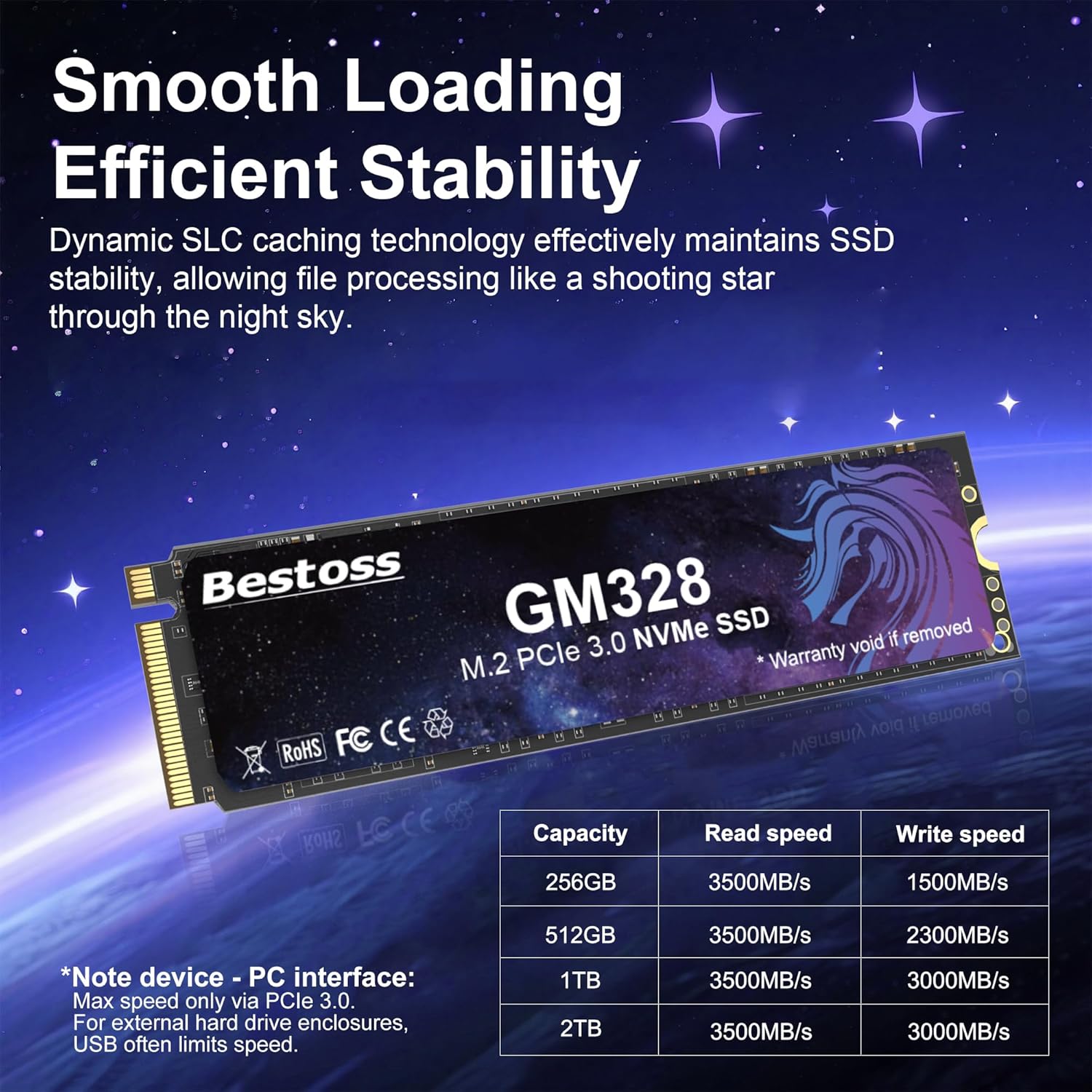 Eternal Guardian of Data: Enduring Security: Features HMB+ Dynamic SLC Cache for perfect software-hardware synergy. With read/write speeds of up to 3500/3000 MB/s, enjoy smooth loading, efficient stability, and system responsiveness. Experience system startup, multi-tasking, and game loading as light and smooth as a unicorn.