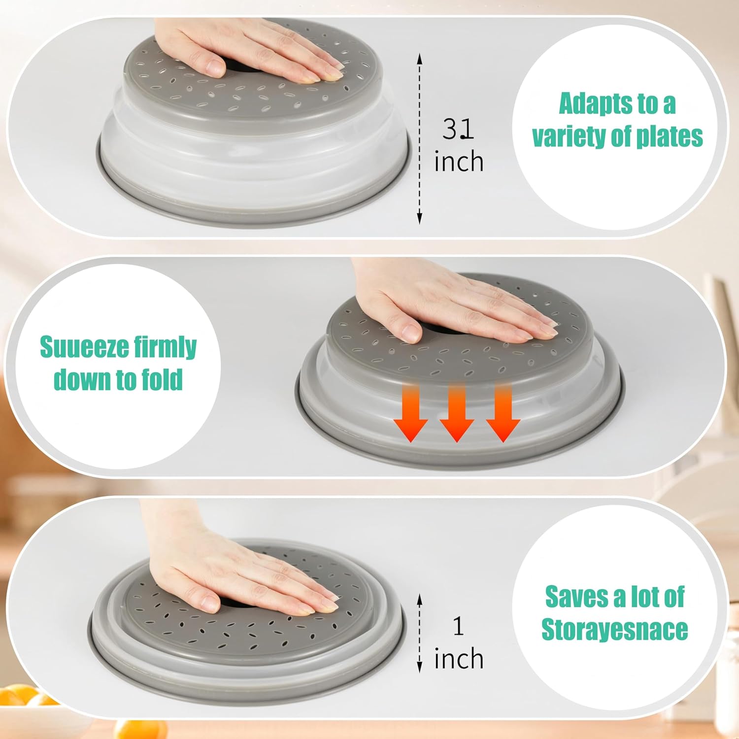 Microwave save cover with multiple perforations allow steam to escape. Microwave cover protects your microwave oven from food splatter while you heat the food, keep your microwave clean. A built-in finger grip makes it easy to lift.