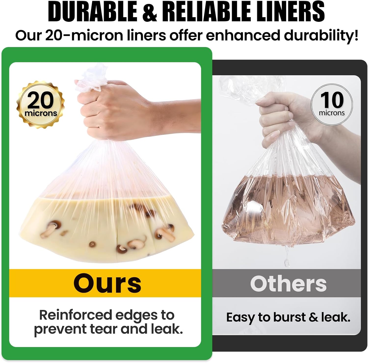 Our liners feature reinforced edges, making them extra tough and resistant to tearing and leaking.