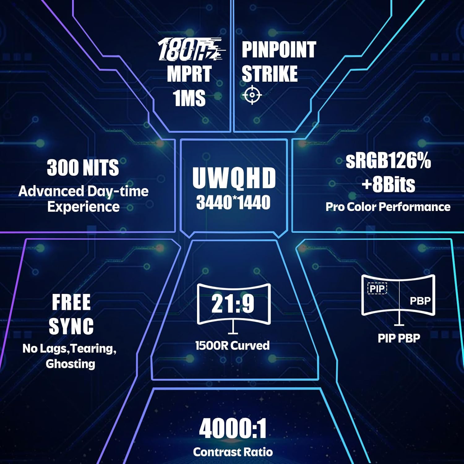 See More And Do More, The 21:9 aspect ratio provides you with 30% more screen space versus the conventional monitor. The 1500r large computer monitor’s wide resolution(3440 x 1440) offers seamless multi-screen display capabilities, expand your performance and productivity. The PIP/PBP function is perfect for gamers, professionals, and anyone who needs to multitask. With our advanced display technology, you can easily split your screen to manage multiple tasks simultaneous