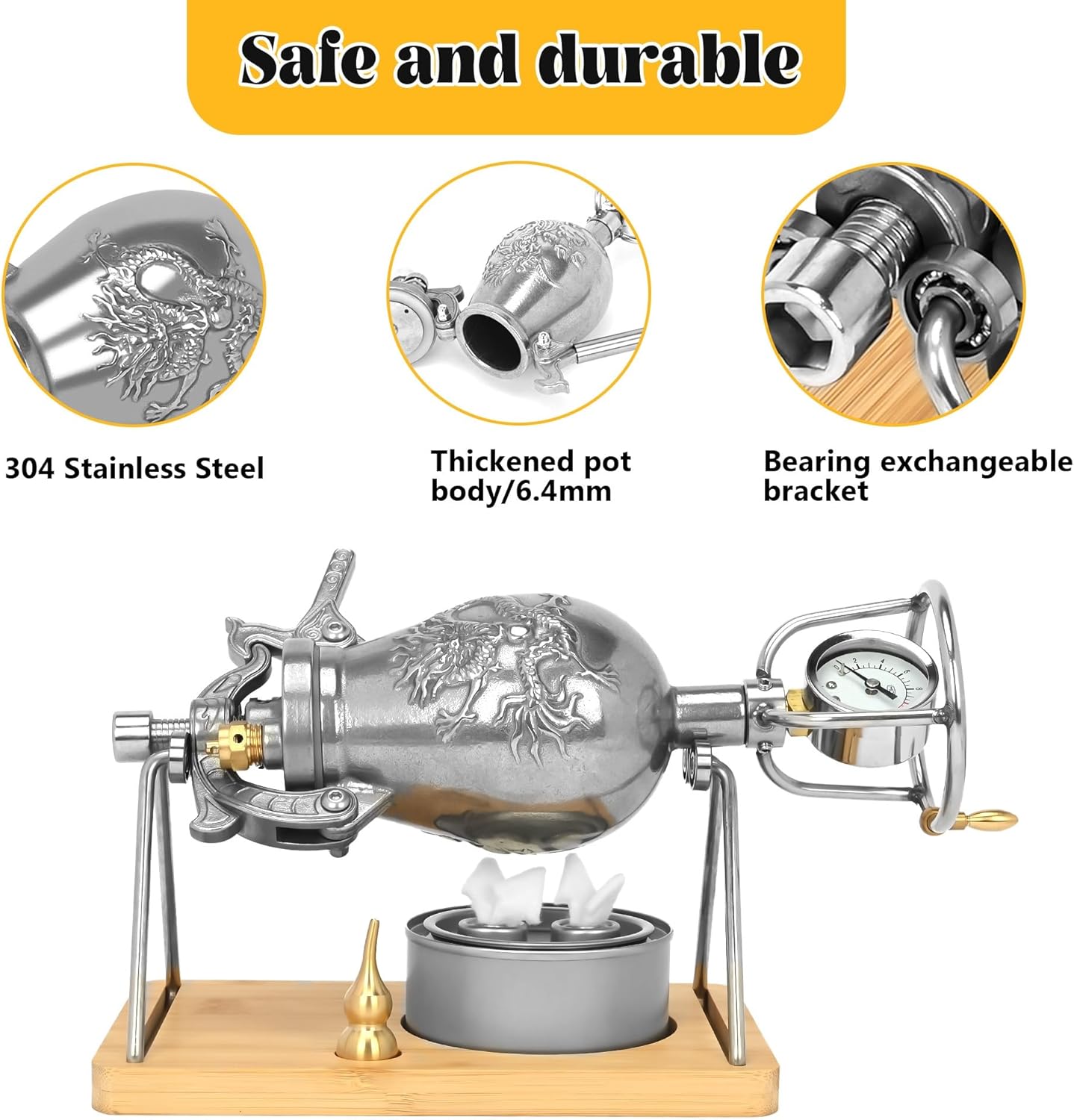 Excellent Safety:Gtouse retro cannon popcorn popper features active and passive safety valve designs, providing dual protection. In normal circumstances, you only need to check that the active safety valve is tightened before heating and monitor the pressure gauge during use
