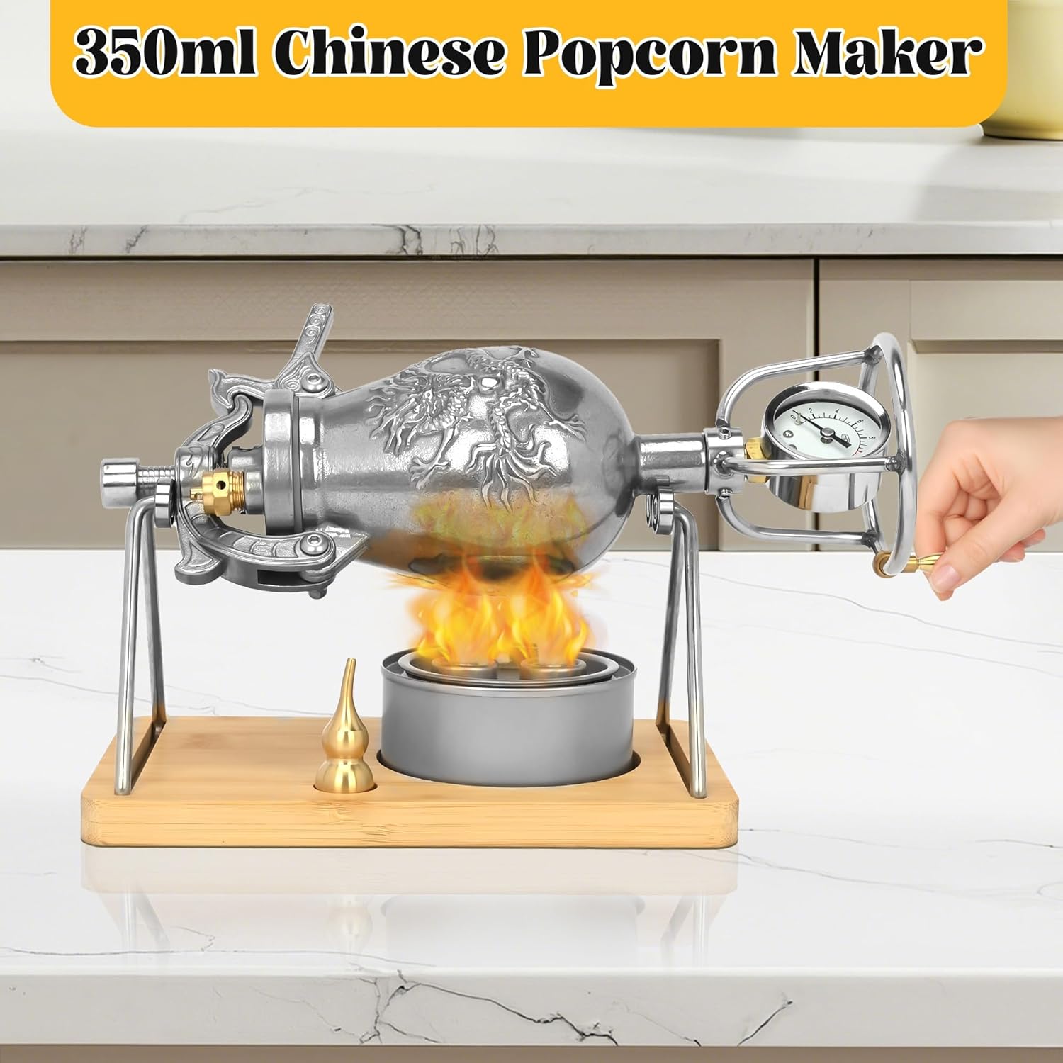 Durable Popcorn Pressure Cooker:This traditional chinese popcorn maker is crafted from high quality 304 stainless steel, offering stability, safety, and a long lifespan. It is portable, allowing you to make delicious popcorn anytime, anywhere