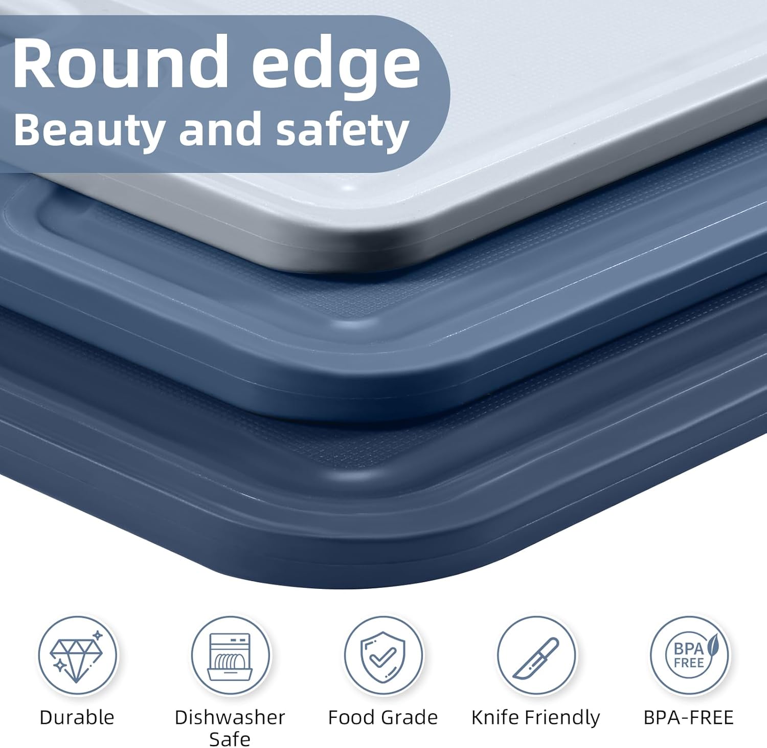 Non-slip bottom mat safety edge:Each cutting board has a non-slip bottom design to ensure stability during use, preventing slipping.Meanwhile, the juice groove around the large cutting board prevent spills and keep countertops clean